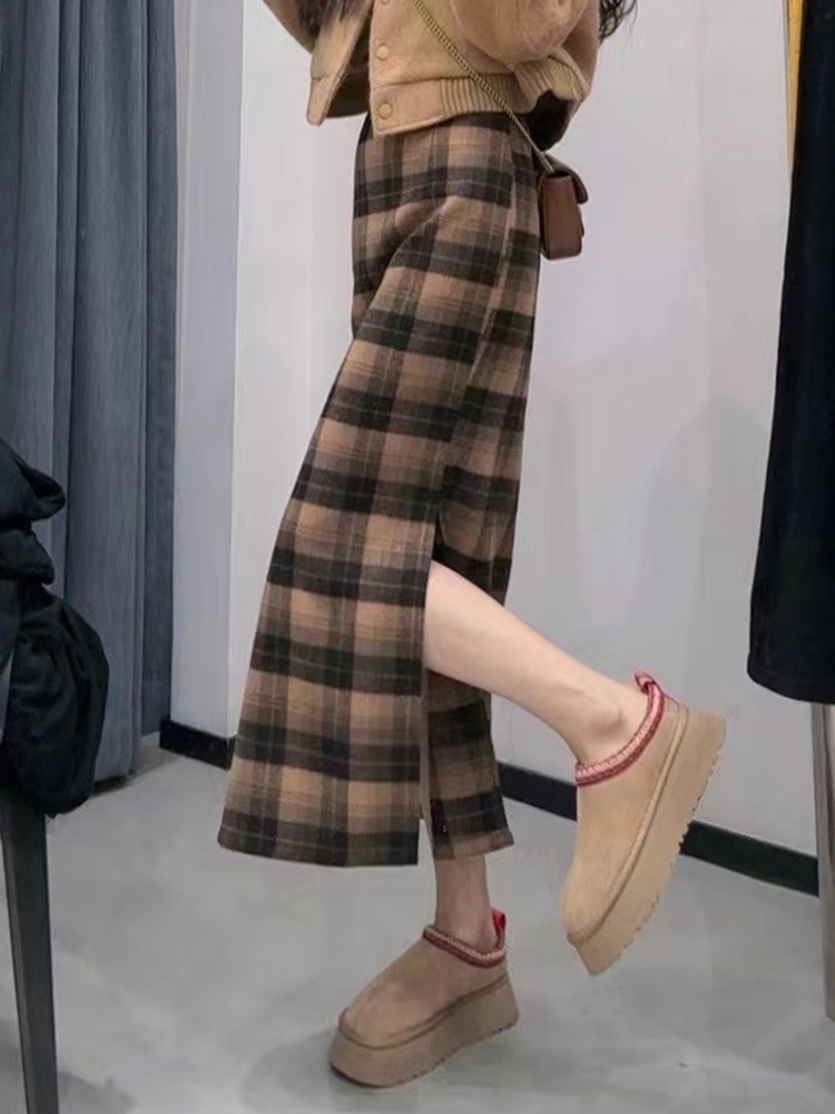 高腰格子毛呢半身裙女2025秋冬新款韩系复古宽松中长款显瘦A字裙