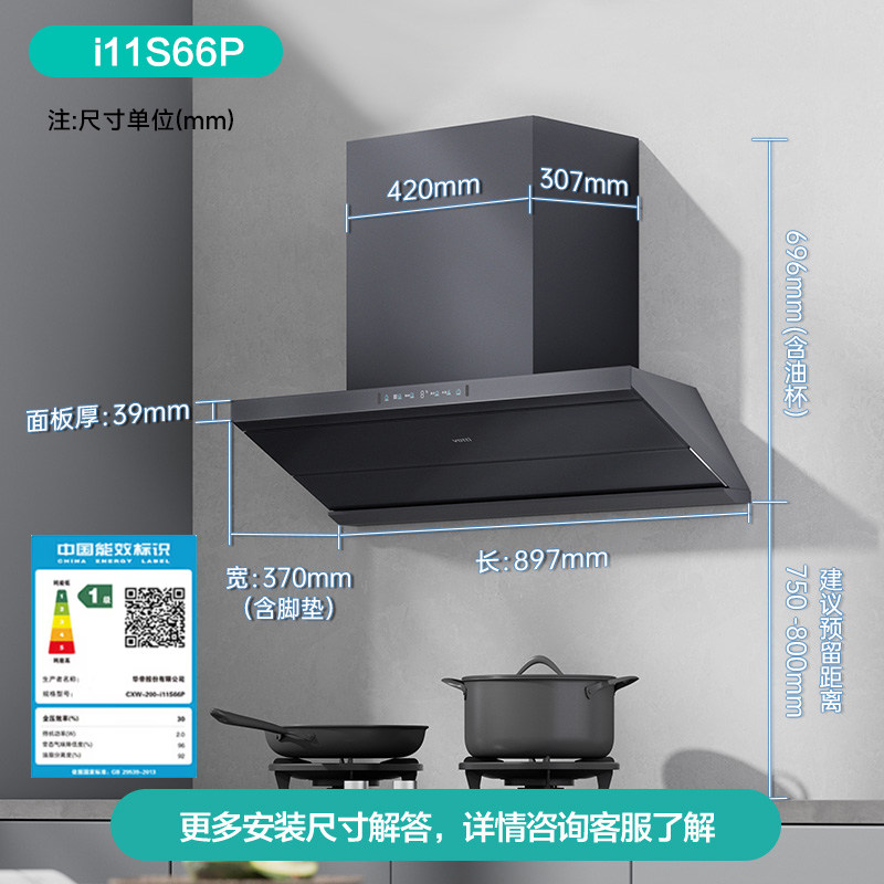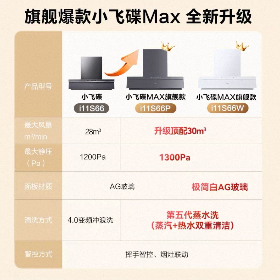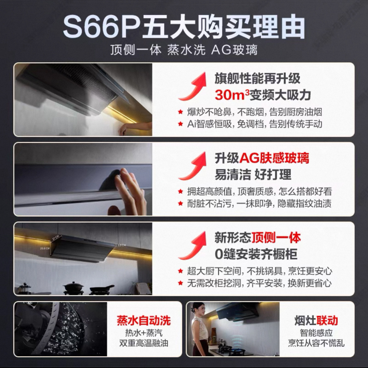 华帝小飞碟Max抽油烟机S66P超薄变频家用厨房大吸力烟机灶具套装
