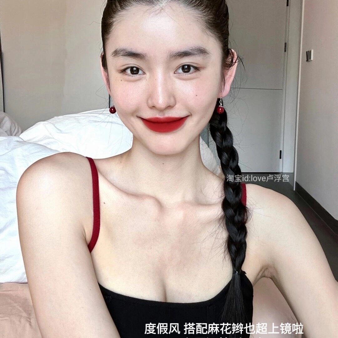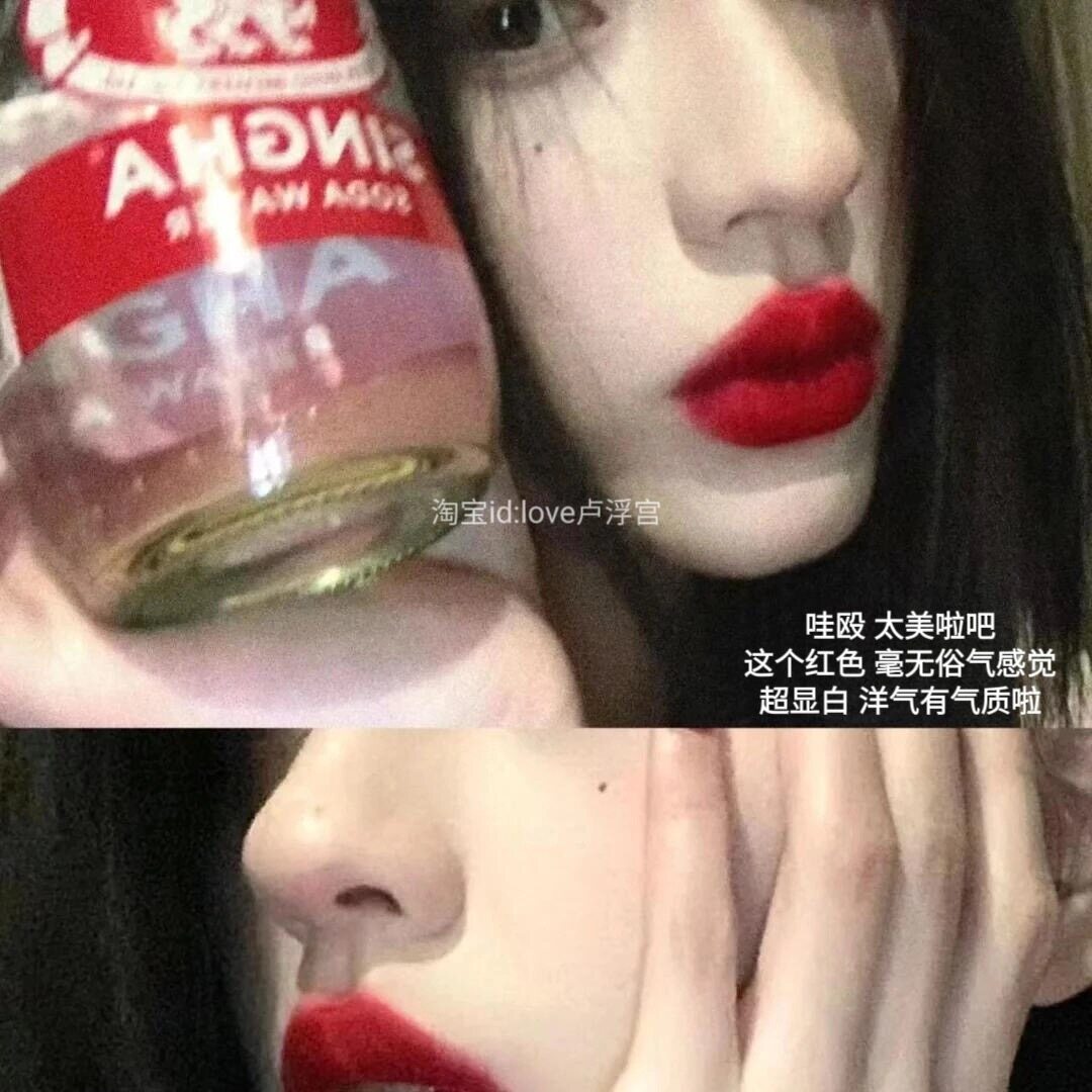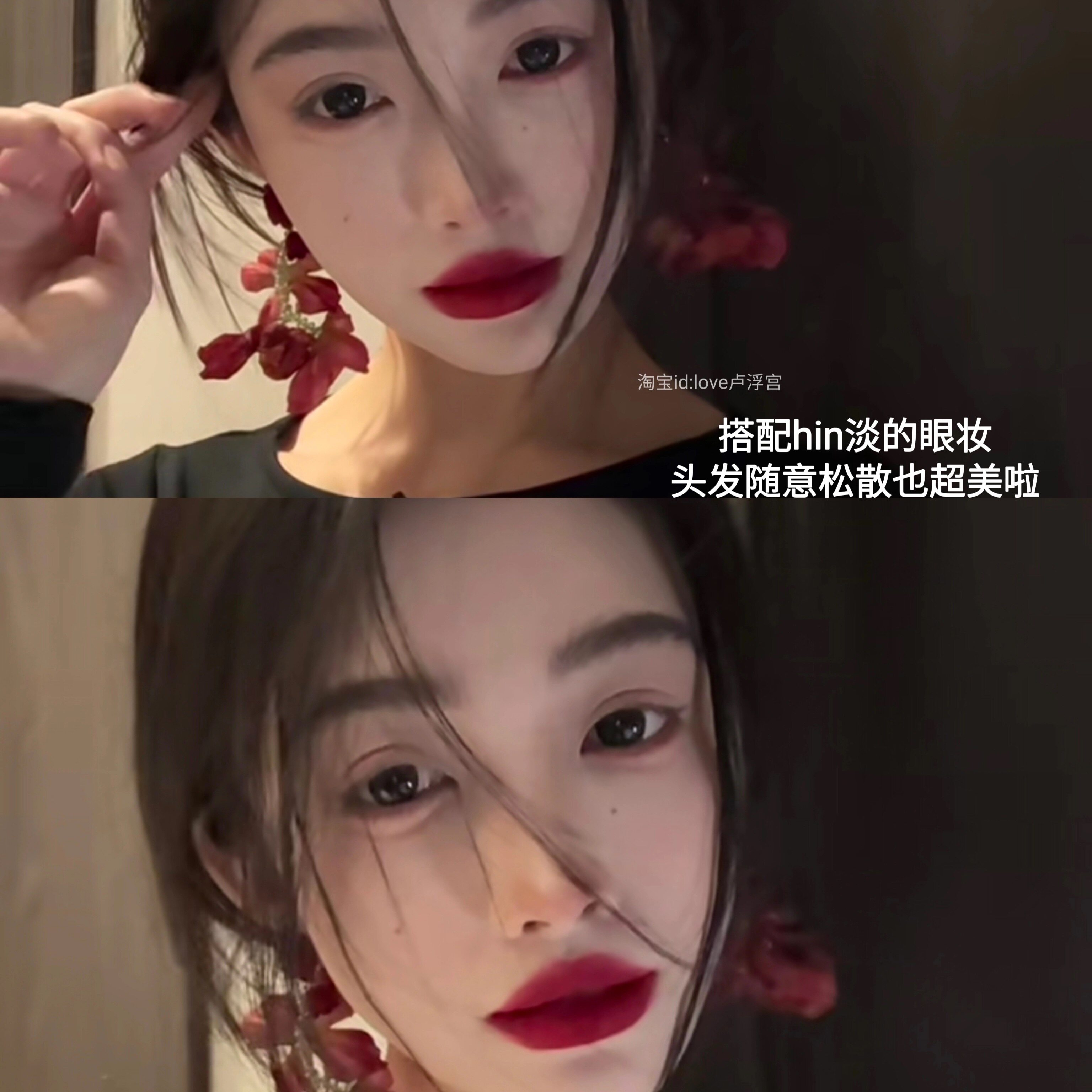 松弛感拉满红唇与黑发! 黑兔b10大花超正冷调大红色唇泥口红显白