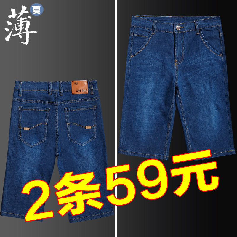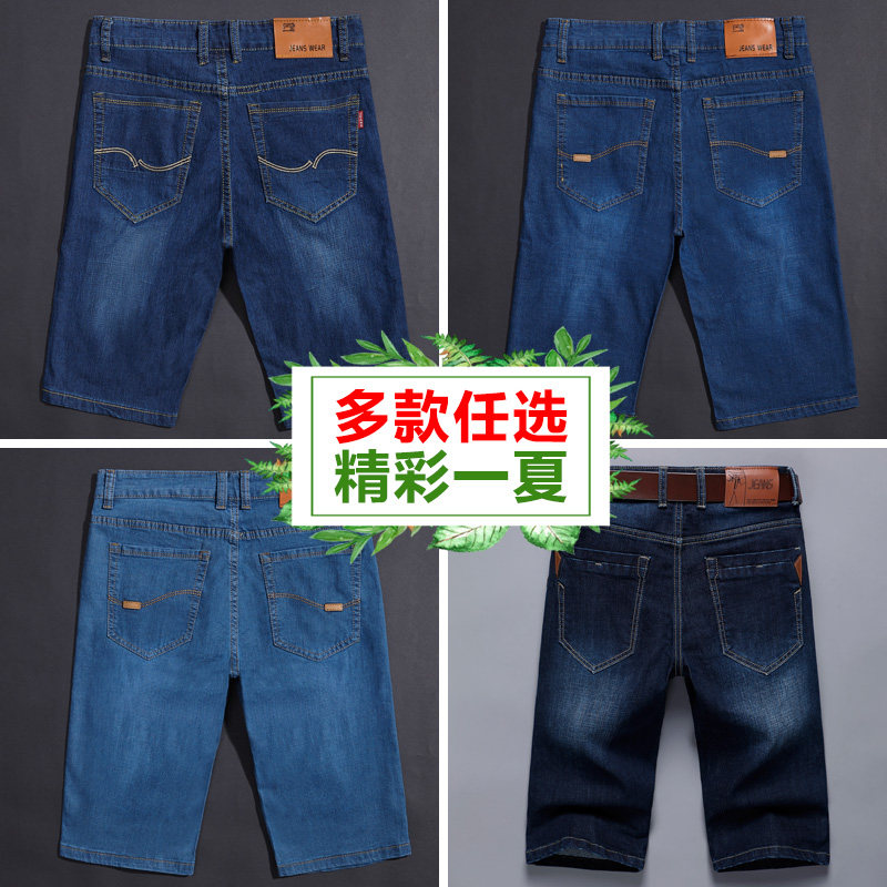 弹力夏季薄款牛仔短裤男五分休闲牛仔裤子男宽松直筒马裤七分中裤