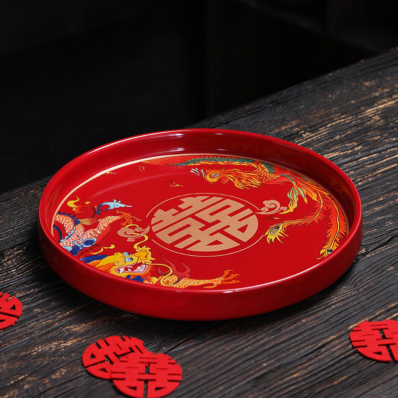 结婚托盘糖果盘茶盘龙凤陶瓷干果盘茶壶新娘红色敬茶婚庆用品大全