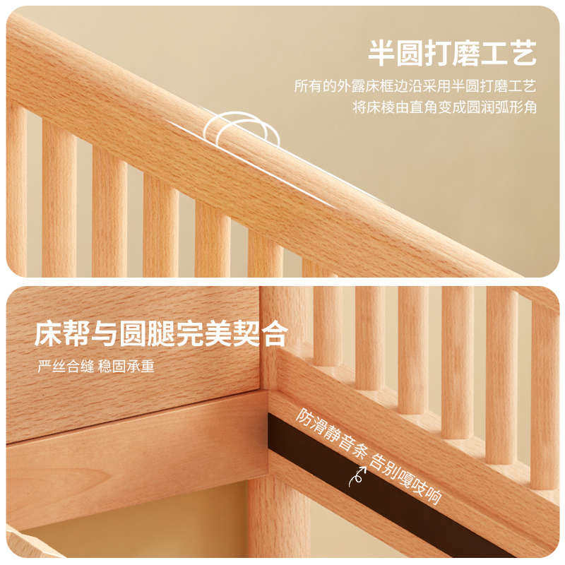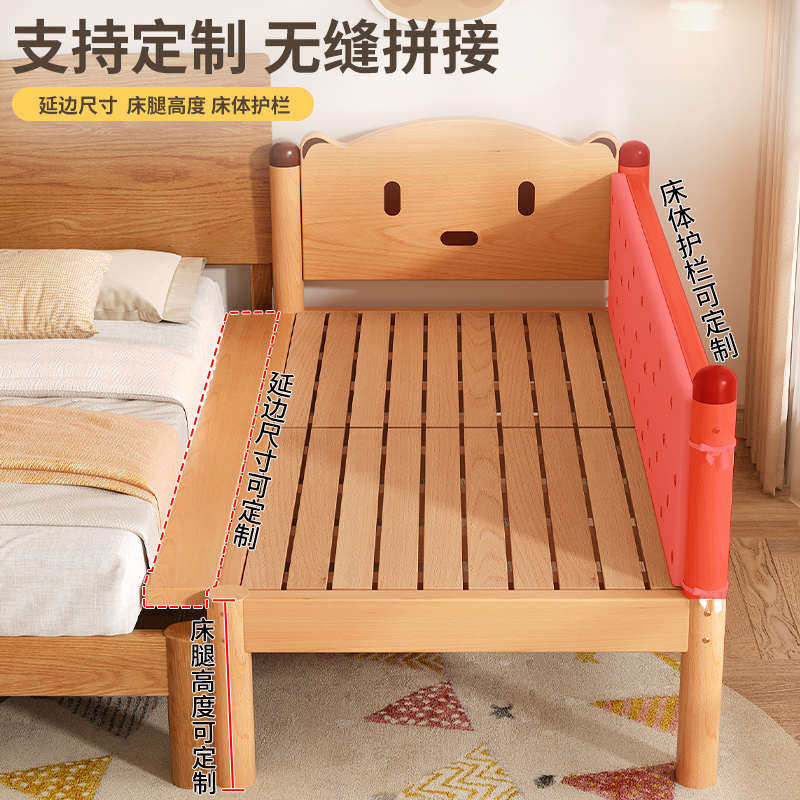 榉木儿童床男孩女孩公主床大床小加宽带护栏床婴儿床边拼接单人床