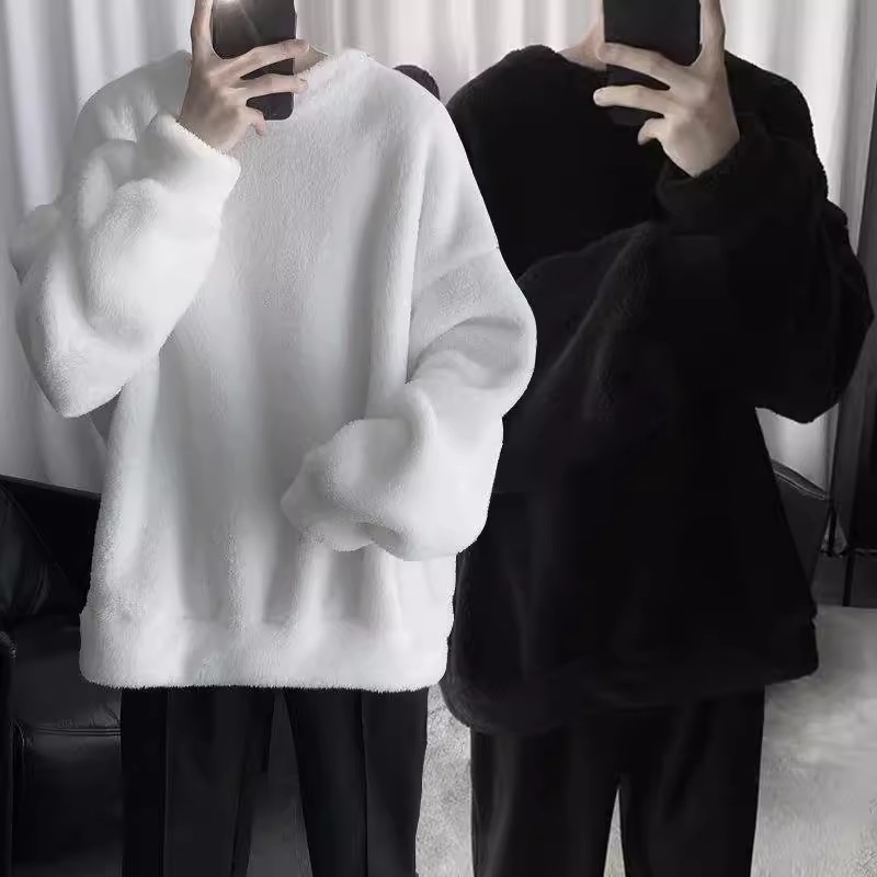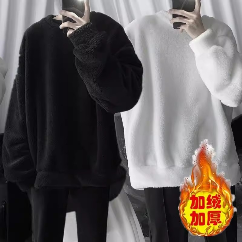 清仓捡漏冬季双面穿羊羔绒套头外套男装加绒加厚棉服潮牌卫衣棉衣