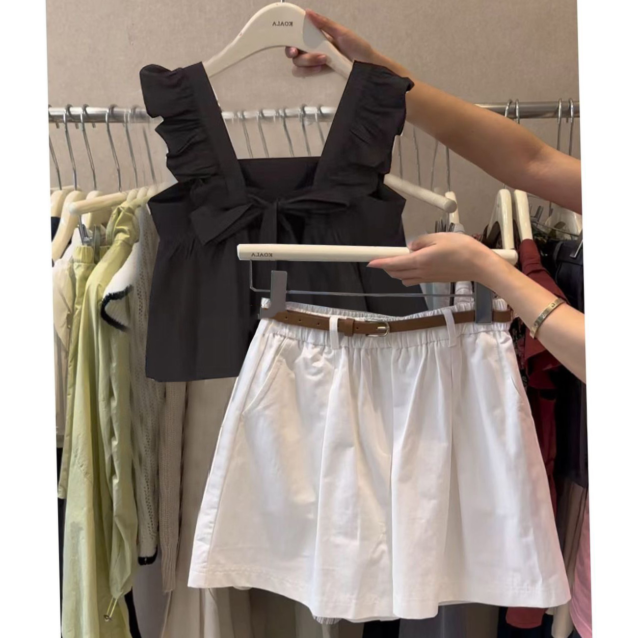 夏季气质高级感小个子穿搭两件套装女2024新款飞飞袖上衣搭配短裤