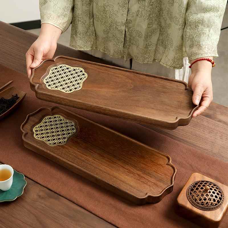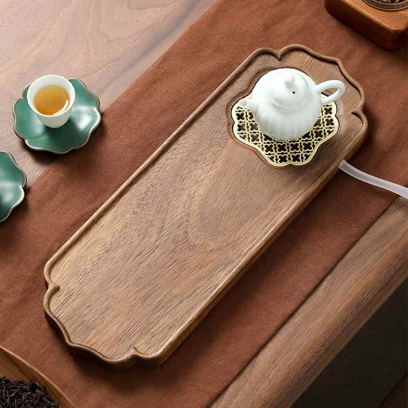 云杨茶舍胡桃木四叶草干湿泡盘沥水茶托盘高端实木新款家用小茶台