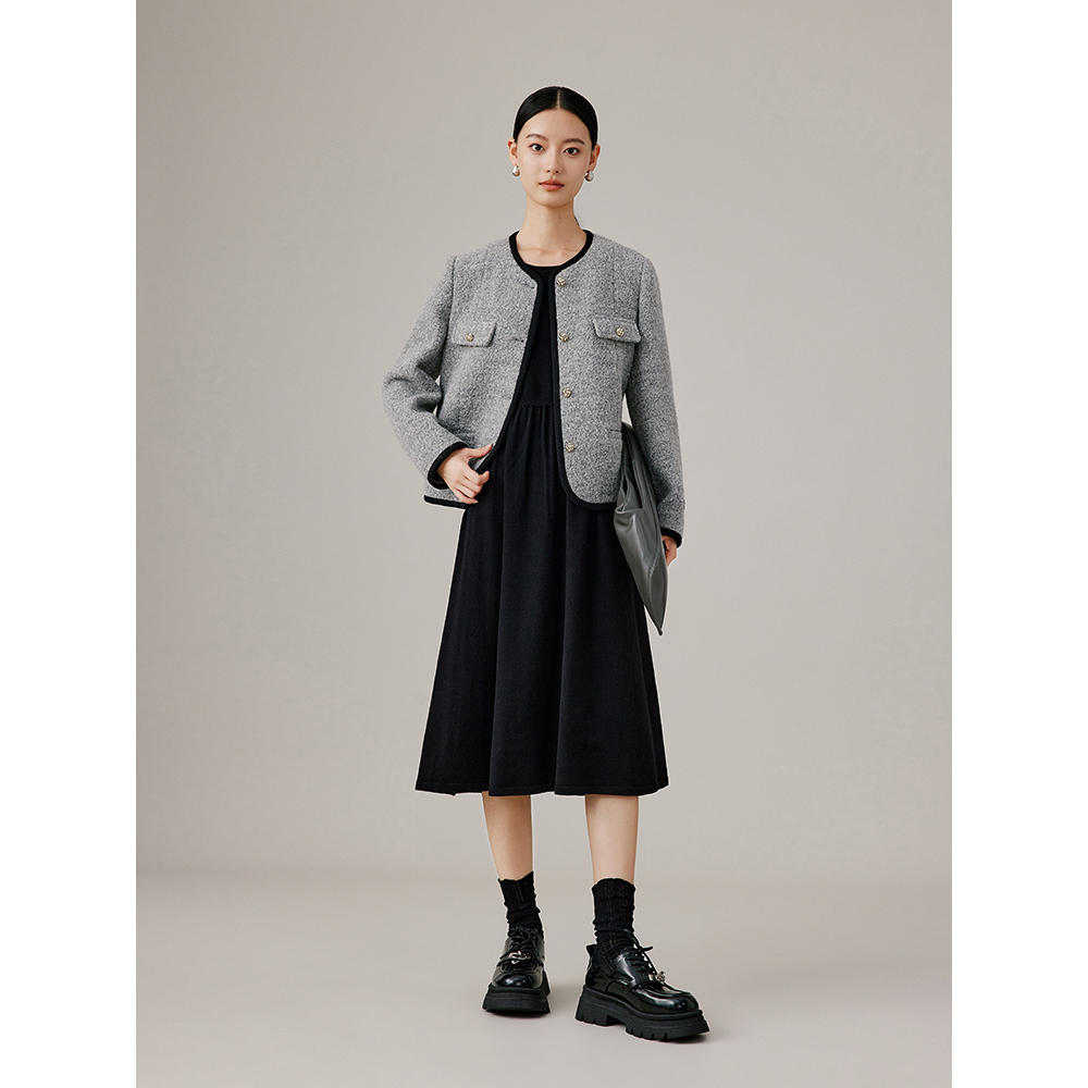 衣香丽影2025秋装新款针织短外套背心连衣裙套装女时尚穿搭一整套