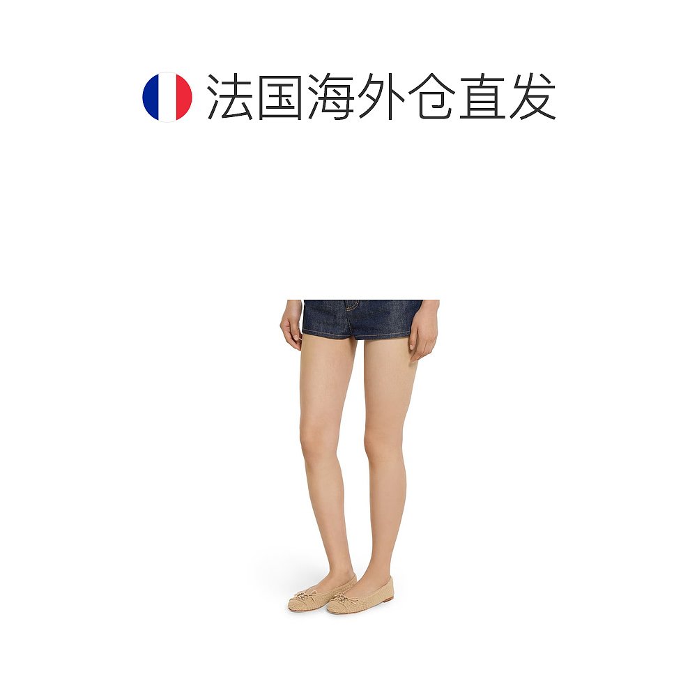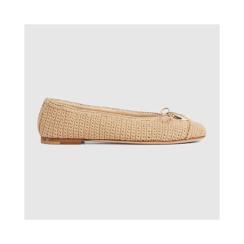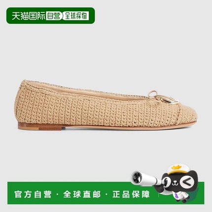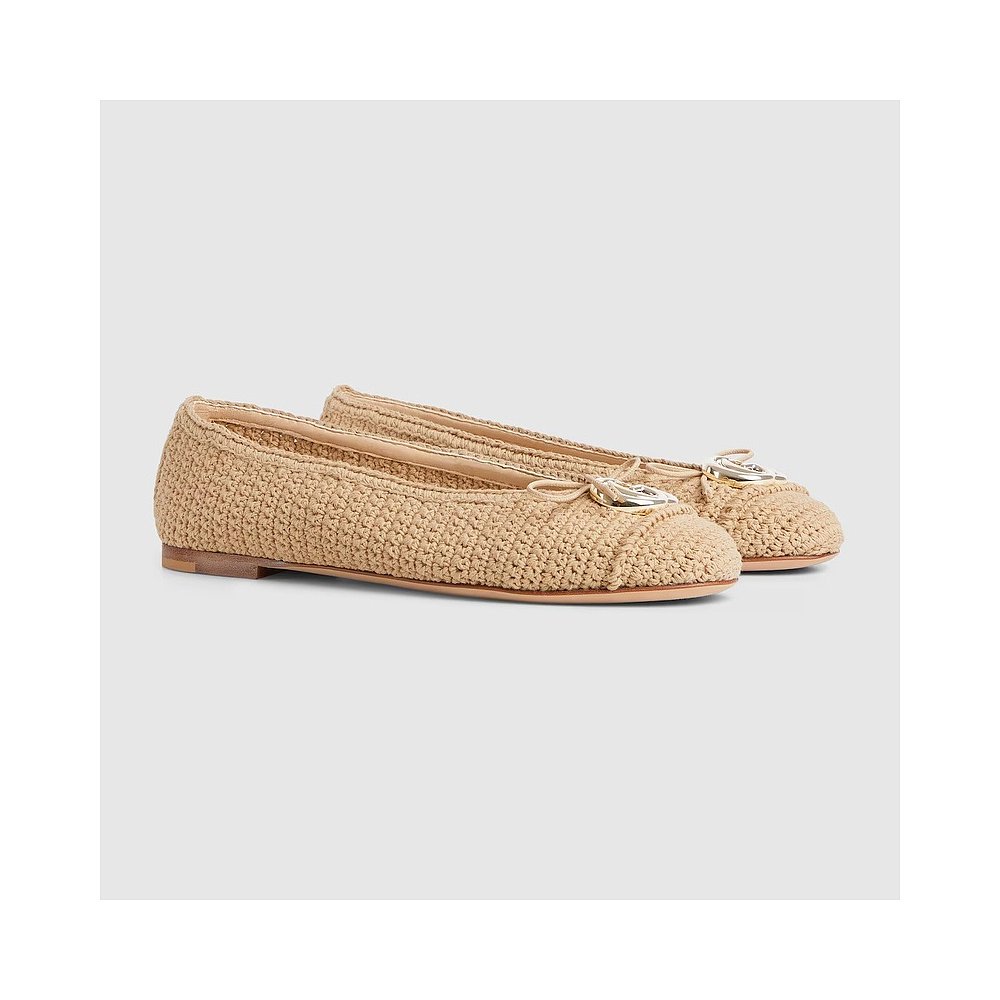 自营欧洲直邮Gucci/古驰 女士浅棕色棉双G蝴蝶结芭蕾平底鞋