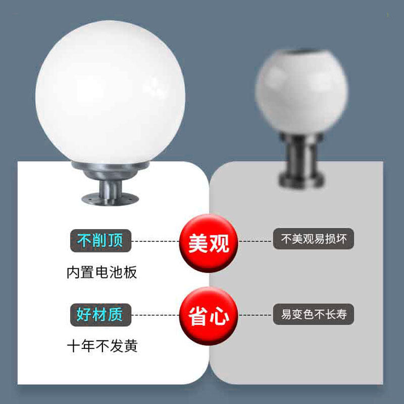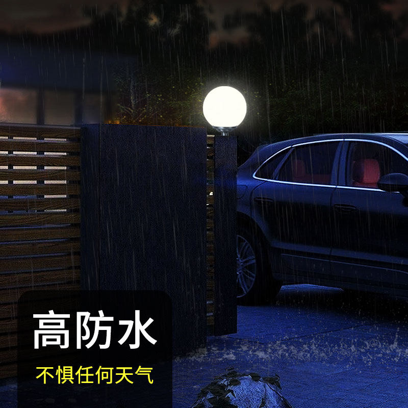 太阳能柱头灯户外防水别墅大门柱子灯庭院外墙圆球形灯现代围墙灯
