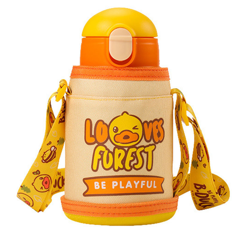 B.Duck小黄鸭保温杯高颜值小学生上学幼儿园水杯食品级吸管杯男女