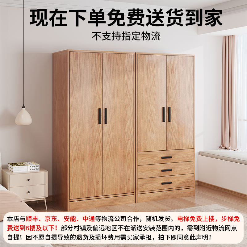 天坛家具衣柜家用卧室原木色小户型带抽屉小柜子单人出租房专用收