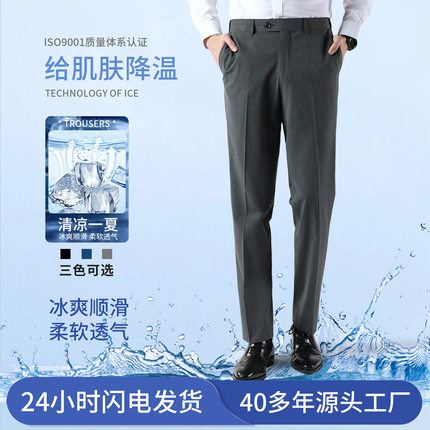 骆豪夏季薄款休闲西装裤垂感直筒裤高级灰色西服裤子凉感男士西裤
