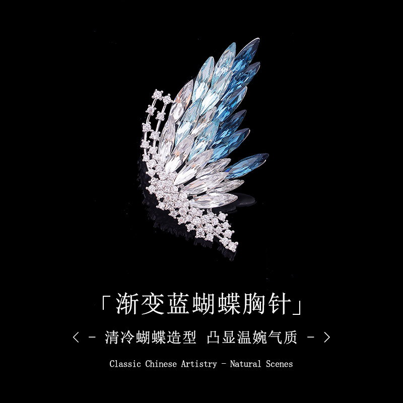 小众蓝色渐变蝴蝶胸针女奢华气质高档胸花精致时尚高级配饰设计感