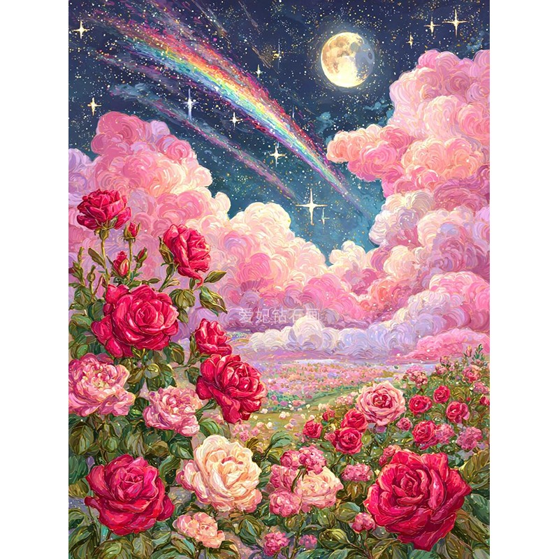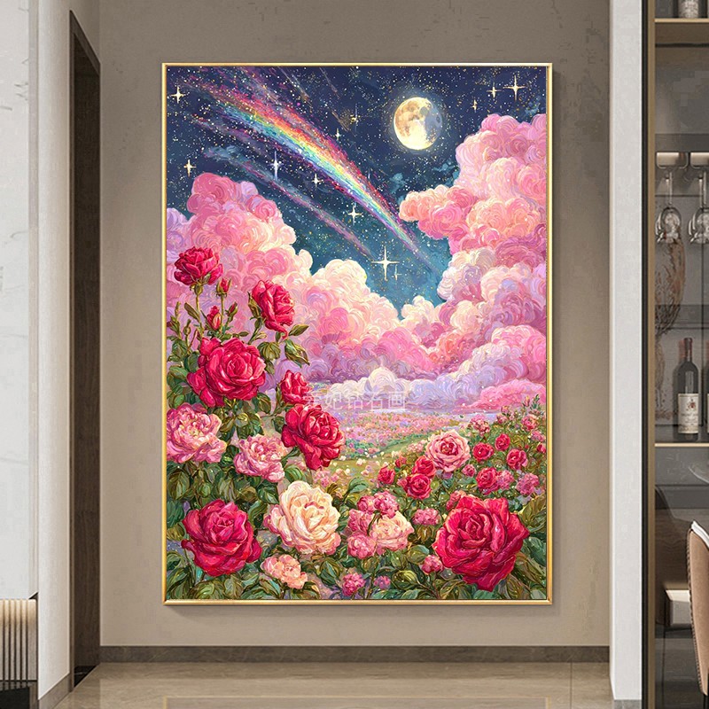 2025新品高端手工DIY方钻满钻钻石画钻石绣牡丹花蓝天白云彩虹