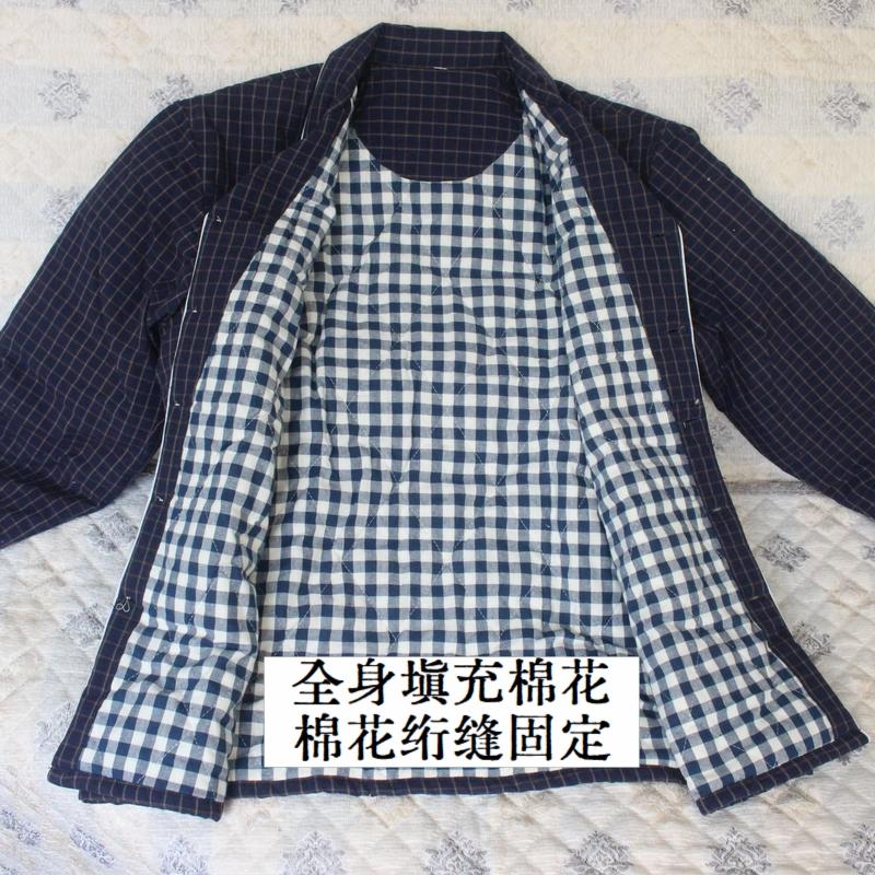 男士老粗布棉花纯棉棉睡衣加厚三层夹棉家居服加棉棉花睡衣套装冬