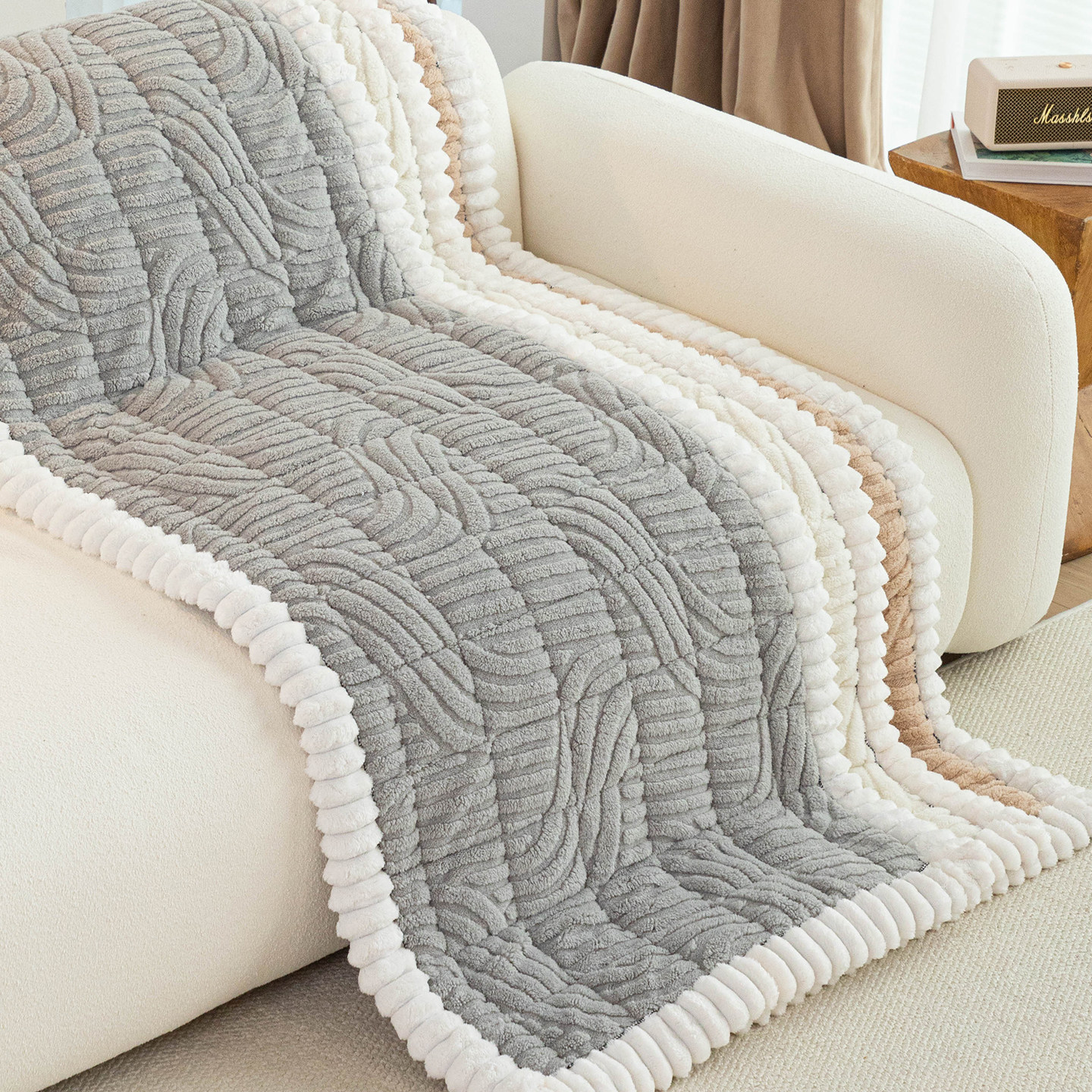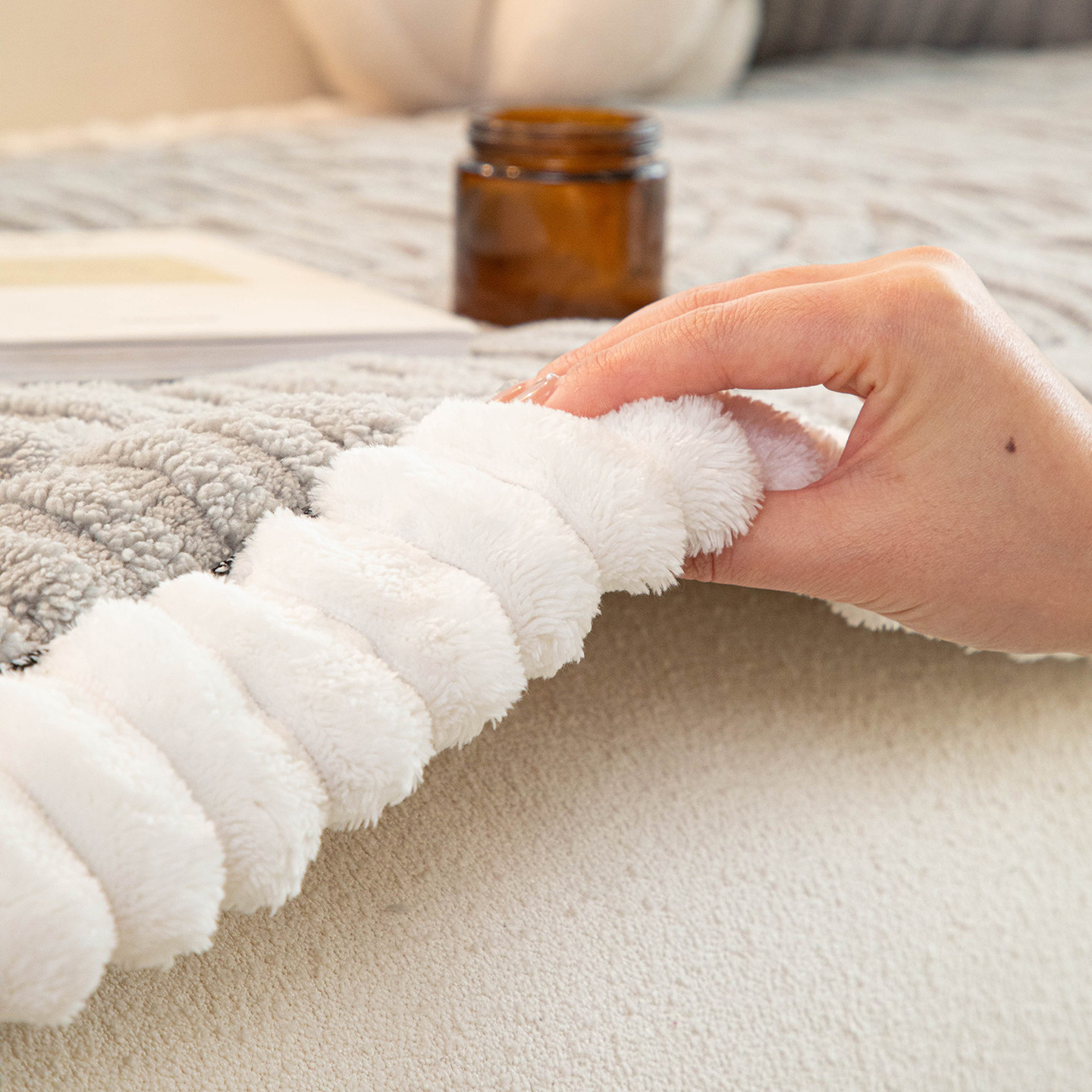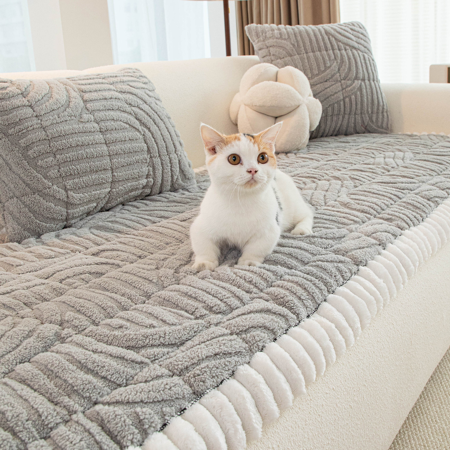 高级感毛绒沙发垫冬季特厚夹棉实木直排沙发保暖坐垫盖布灰色耐脏