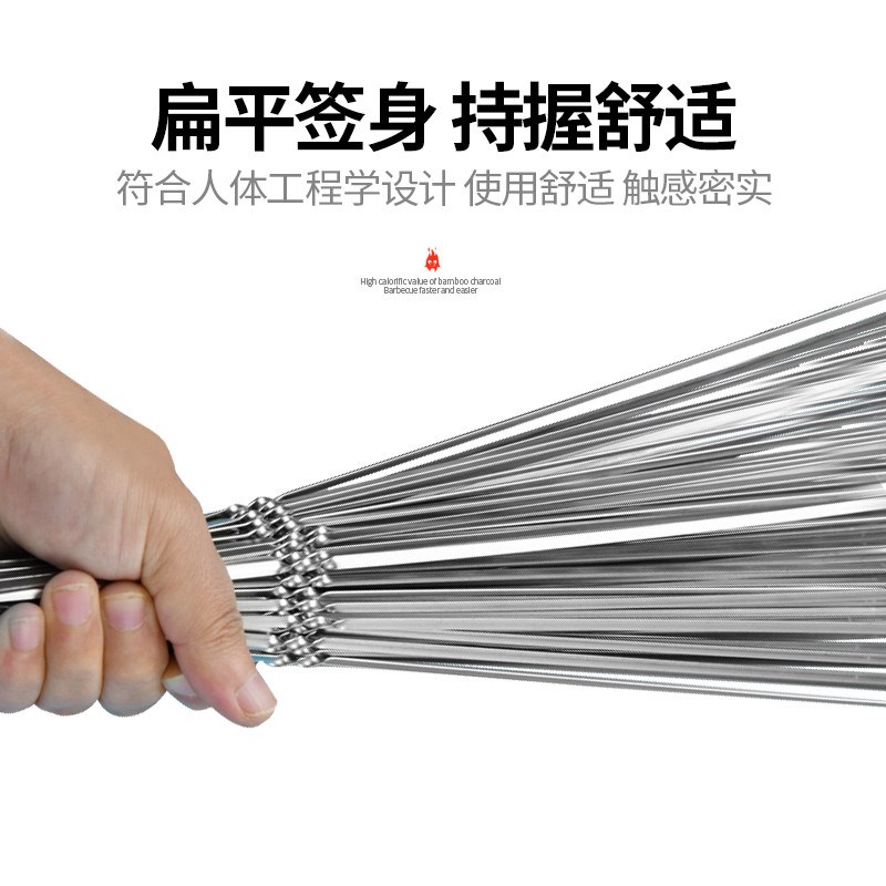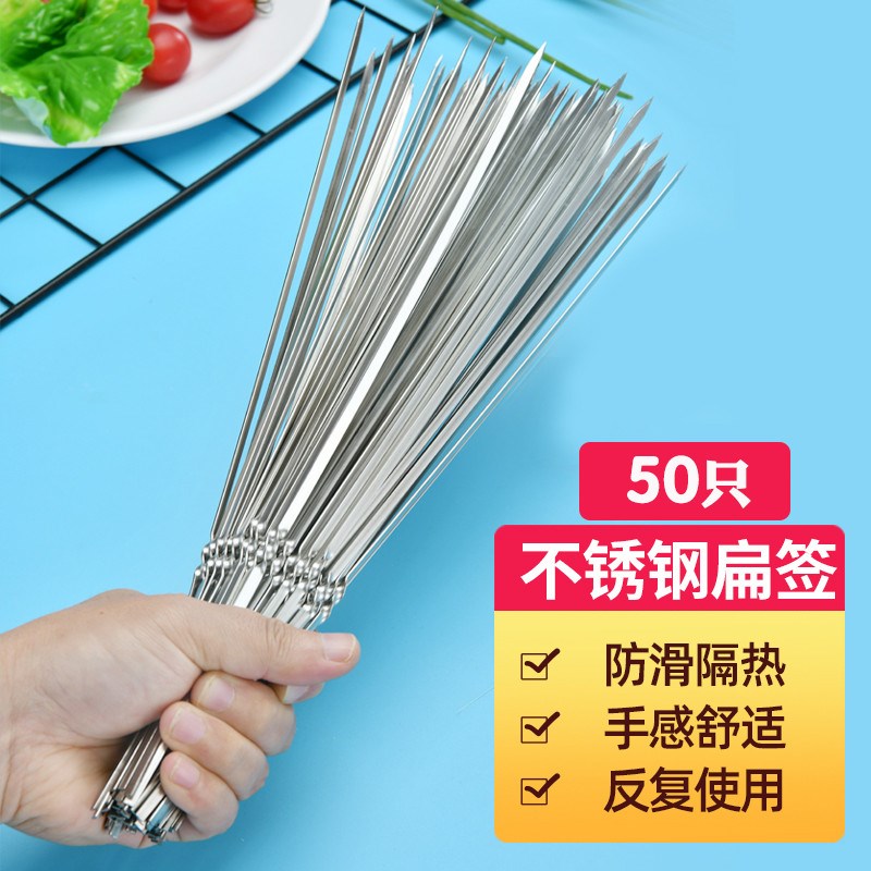 烧烤用具不锈钢扁签加厚刚签烧烤签子烤针羊肉串铁烤肉签烤串新款