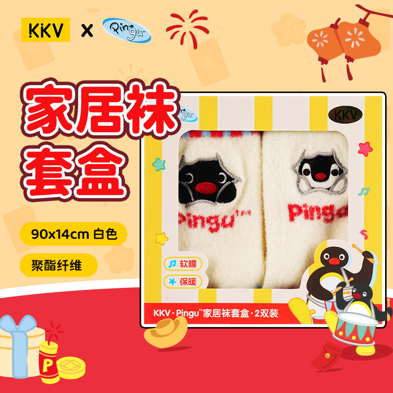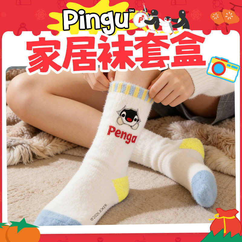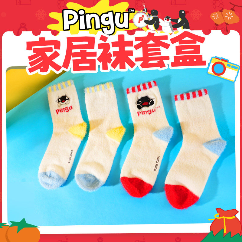 KKVPingu家居袜套盒2双装居家保暖秋冬加厚睡眠动漫卡通周边袜