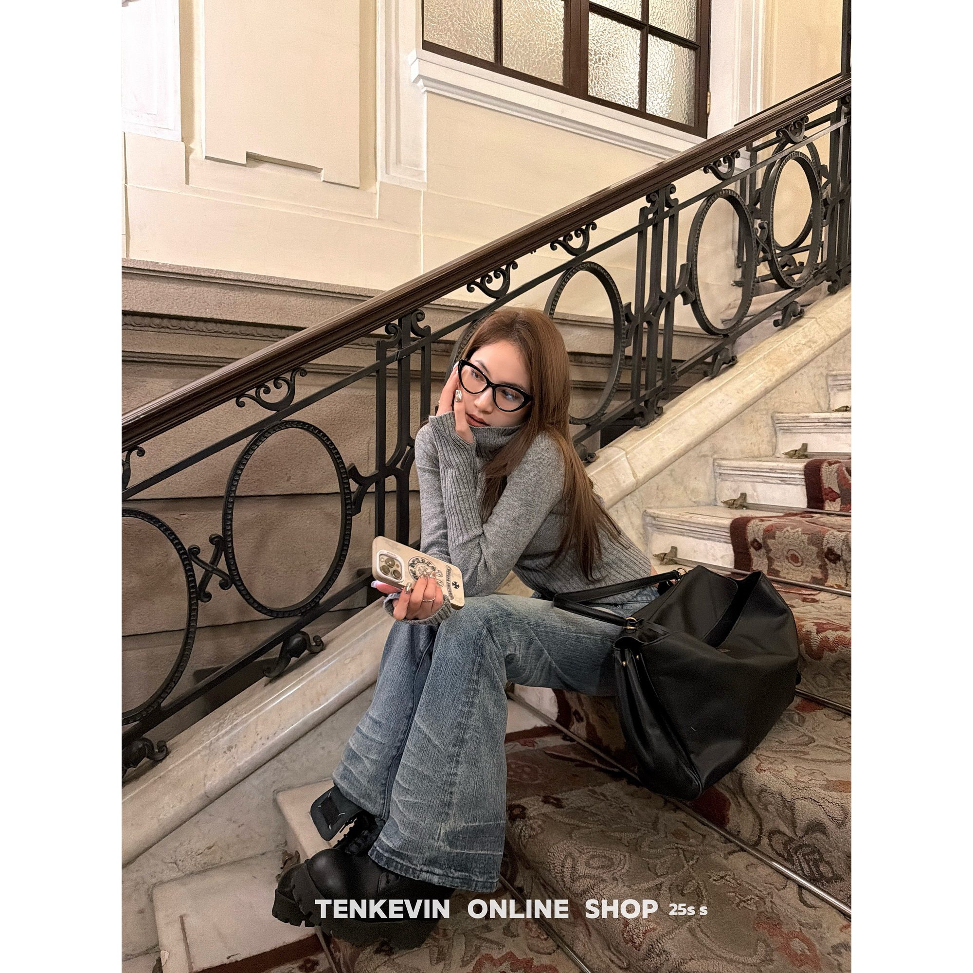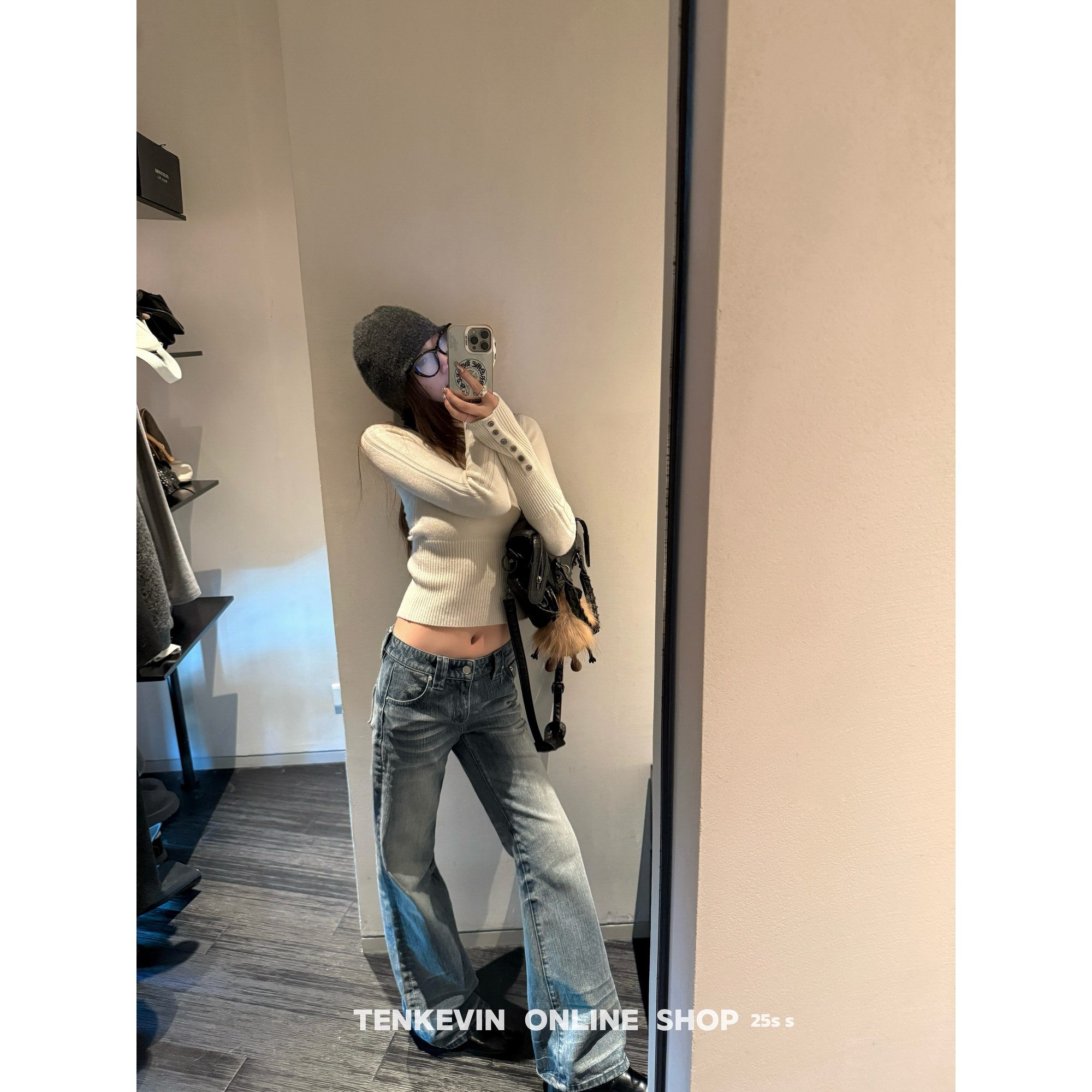 十一石 长腿裤王!美式复古低腰微喇牛仔裤女修身显瘦阔腿休闲裤II