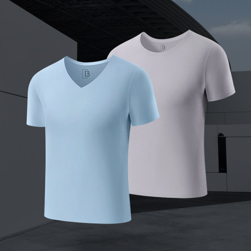 2件 男士纯棉短袖无痕半袖运动健身圆领修身t恤内衣打底汗衫体恤