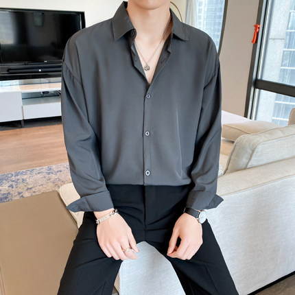高级垂感长袖冰丝衬衫男士夏季宽松潮流情侣薄款防晒翻领衬衣外套