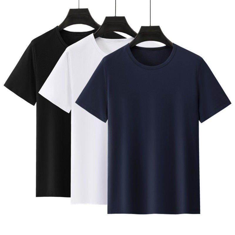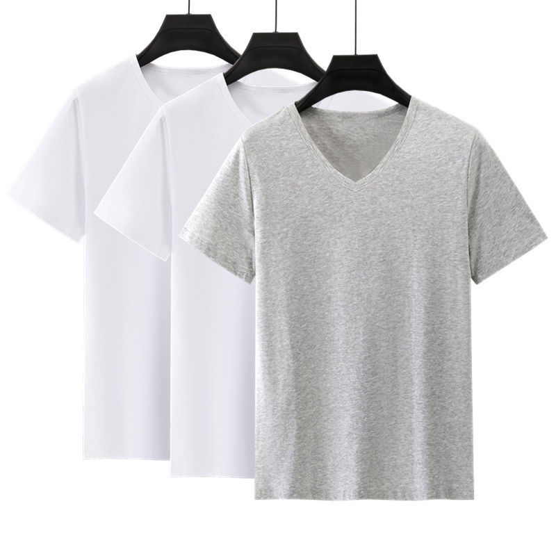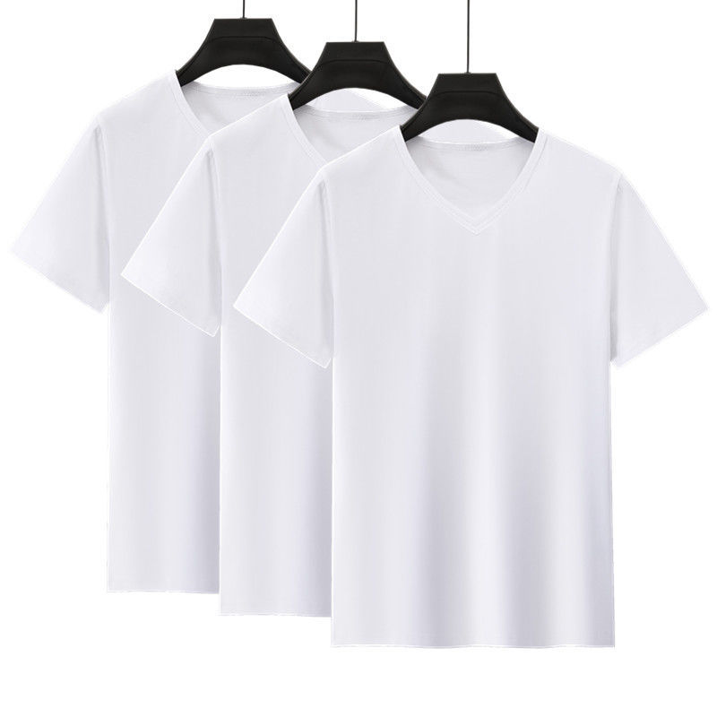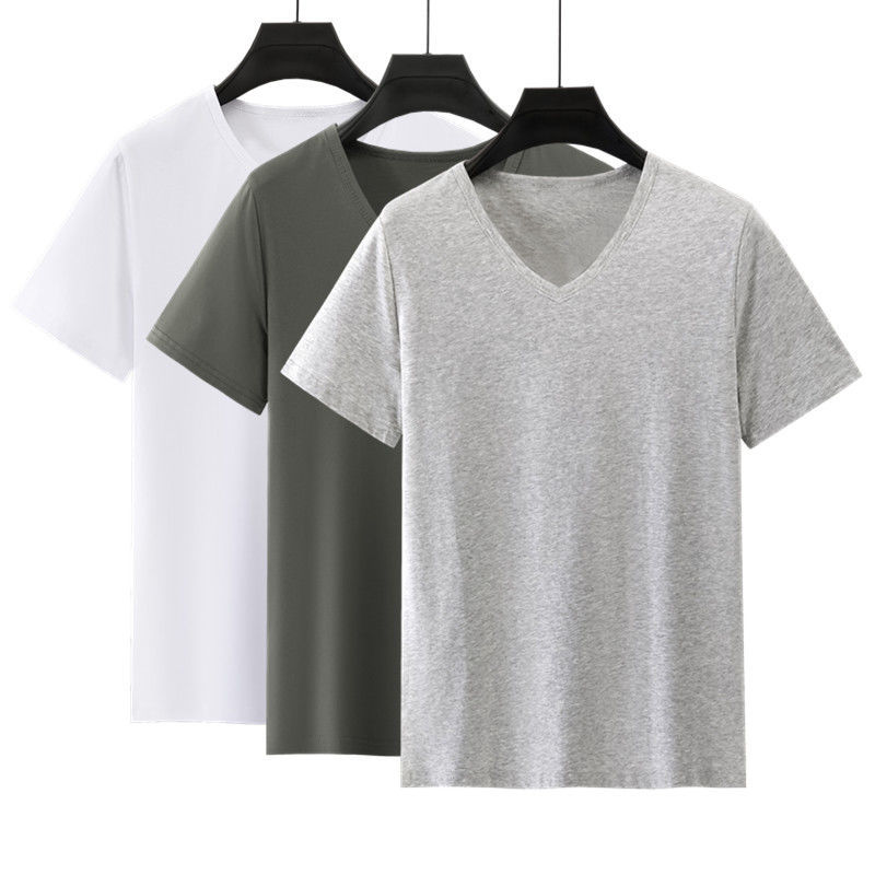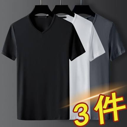 3件装】短袖t恤男莫代尔v领潮流纯色大码冰丝光棉冰感半袖打底衫