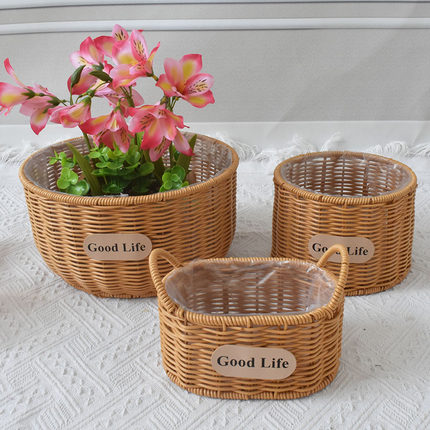 仿藤编织花盆收纳花篮插花手提篮子鲜花花艺绿植盆栽肉肉绿萝盆