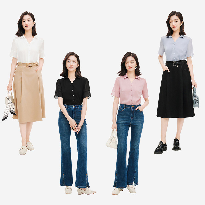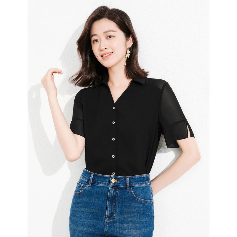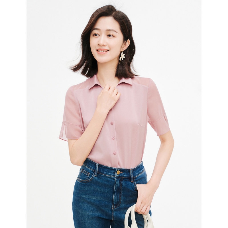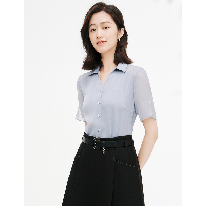 五分醋酸衬衫女上衣珂思