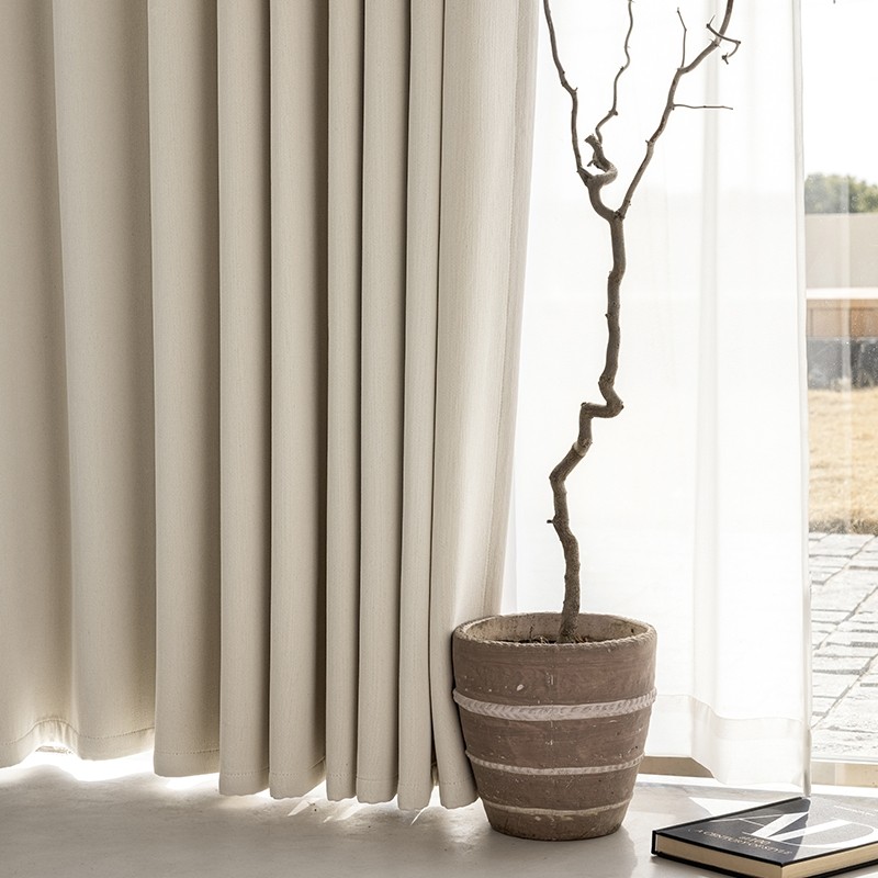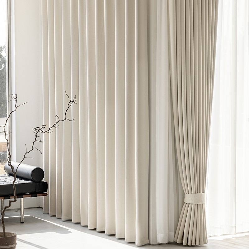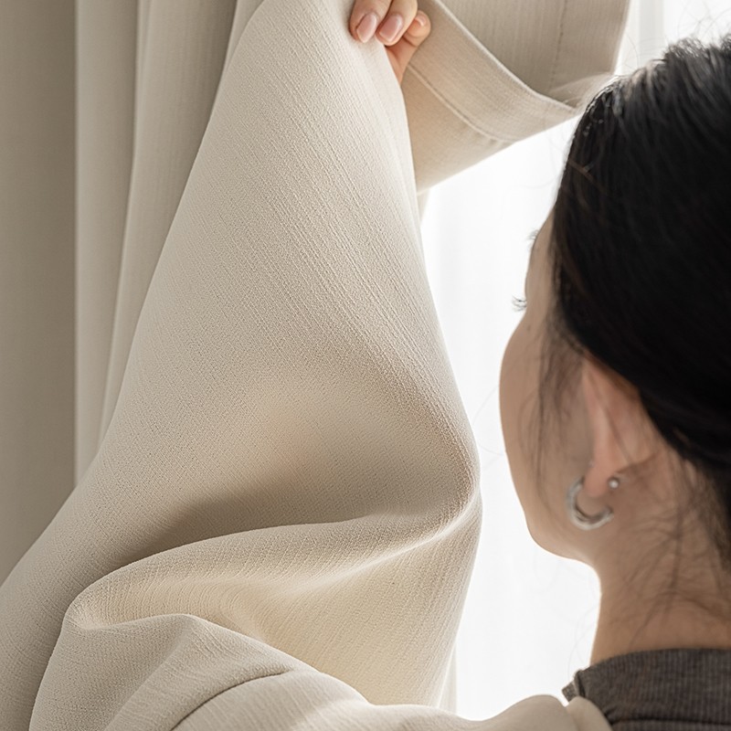 窗帘全遮光加厚双面同色雪尼尔新款奶油风卧室轻奢高端遮阳布2025