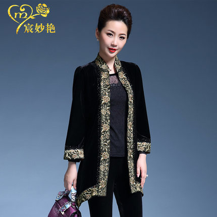 中老年女装秋装长袖妈妈装外套40-50岁金丝绒中年大码风衣中长款