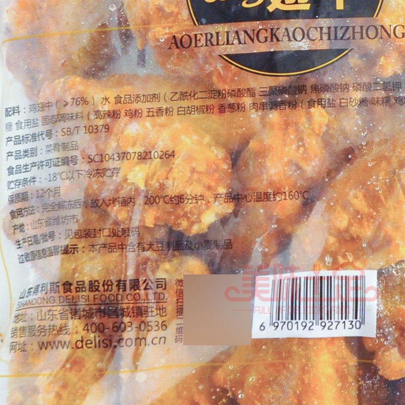 整箱 得利斯鸡翅中1kg*10包 奥尔良烤翅冷冻鸡翅中翅奥尔良鸡翅中