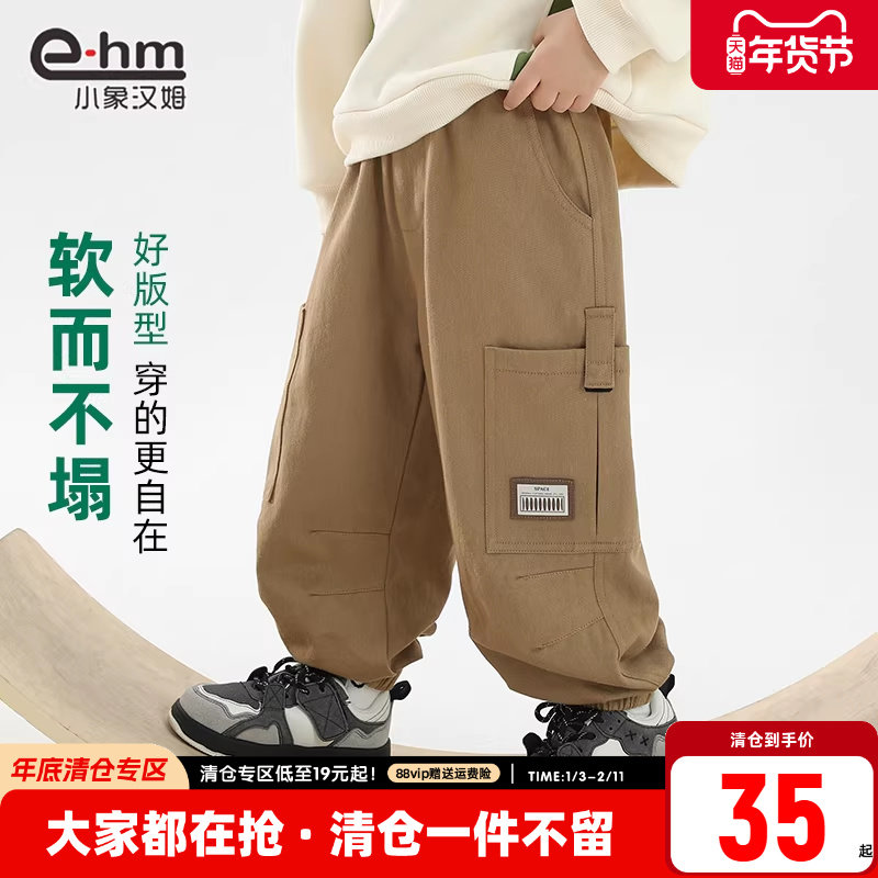 小象汉姆童装男童工装裤儿童休闲长裤2026春装新款男孩裤子洋气潮