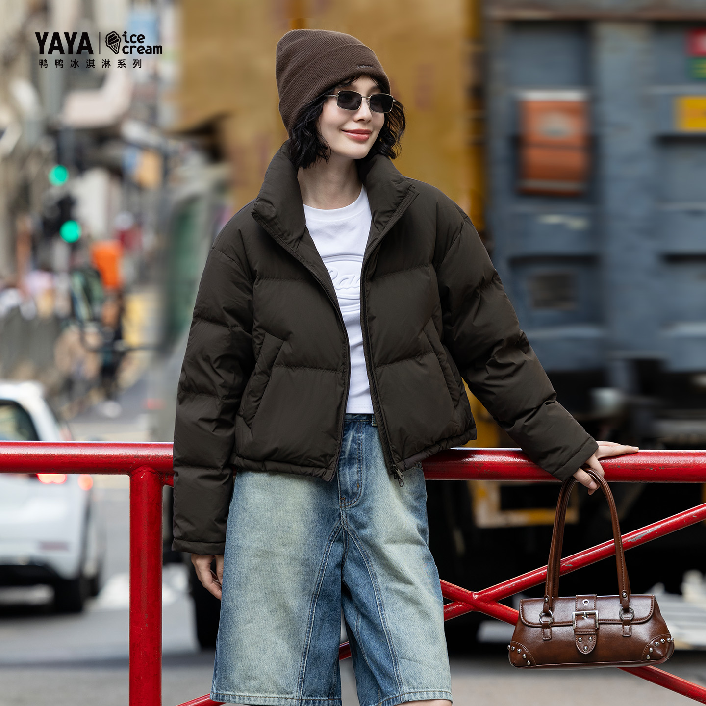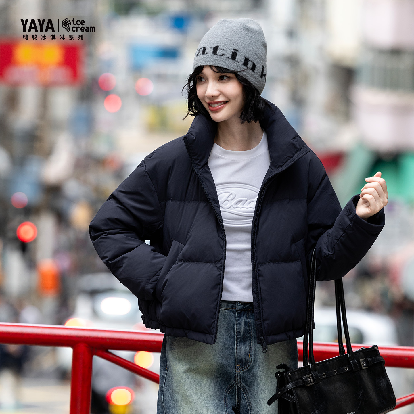 【冰淇淋系列】鸭鸭官方2025新款时尚外套冬季立领短款女士羽绒服