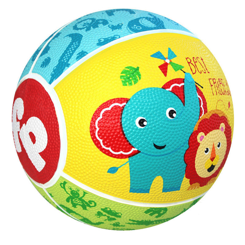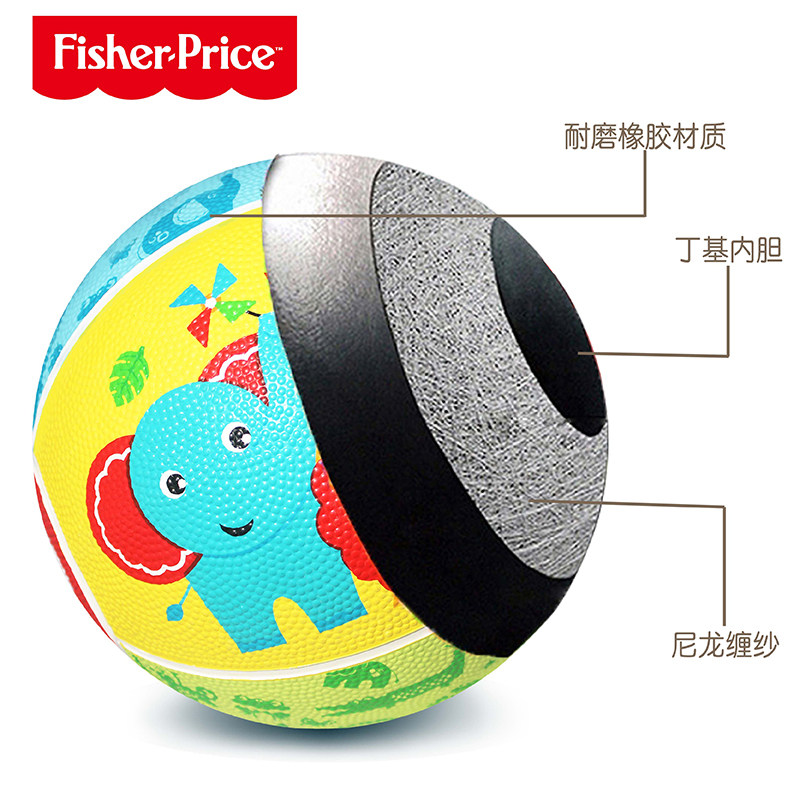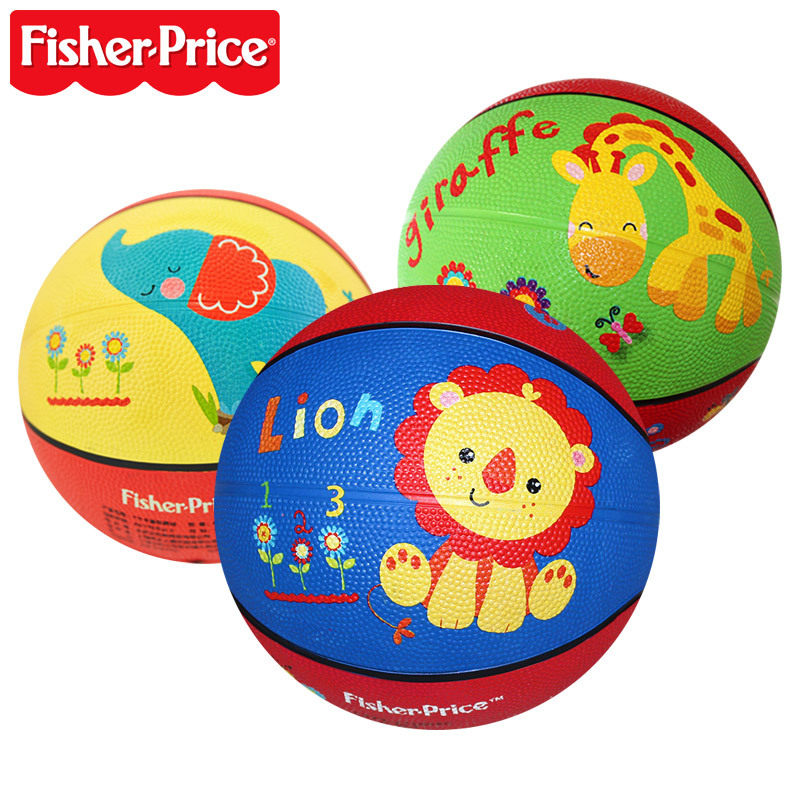 费雪7寸卡通玩具球橡胶篮球幼儿园宝宝小皮球儿童玩具送充气筒