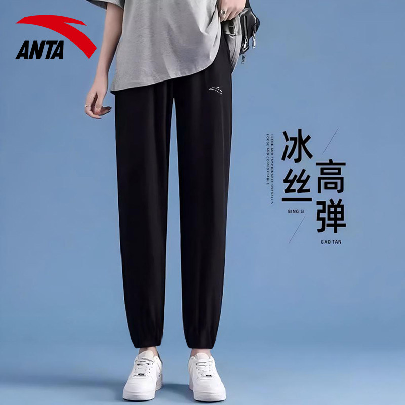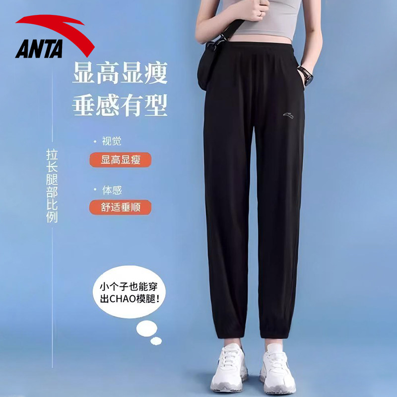 安踏运动裤冰丝女裤2025夏季女士速干薄款长裤旗舰店直筒九分裤子