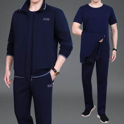 爸爸新款中老年运动装套装春季秋大码中年士男外套休闲73199963三