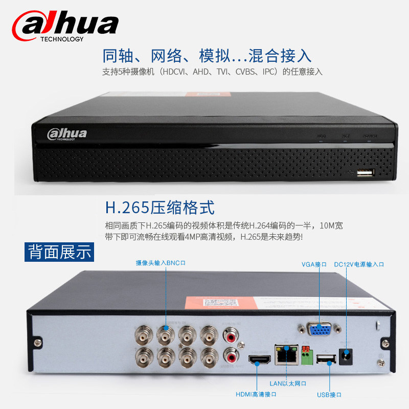 大华4/8/16路DVR模拟HCVR同轴硬盘录像机双盘五混合家用监控主机