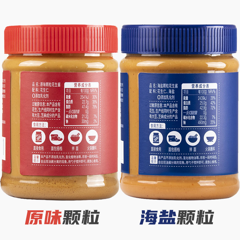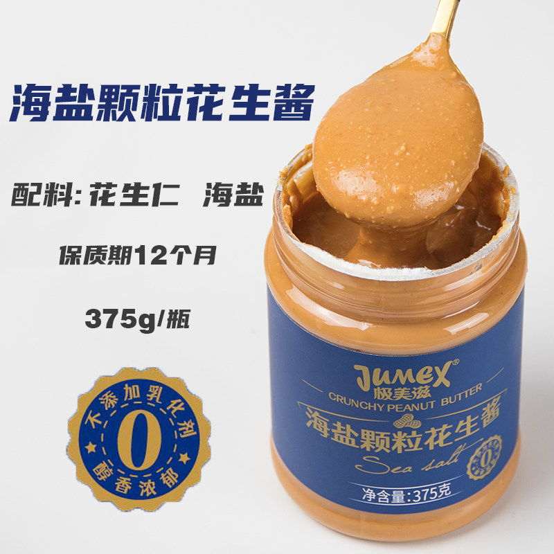 极美滋海盐颗粒花生酱375g 0添加蔗糖无健身餐减三明治面包脂拌面