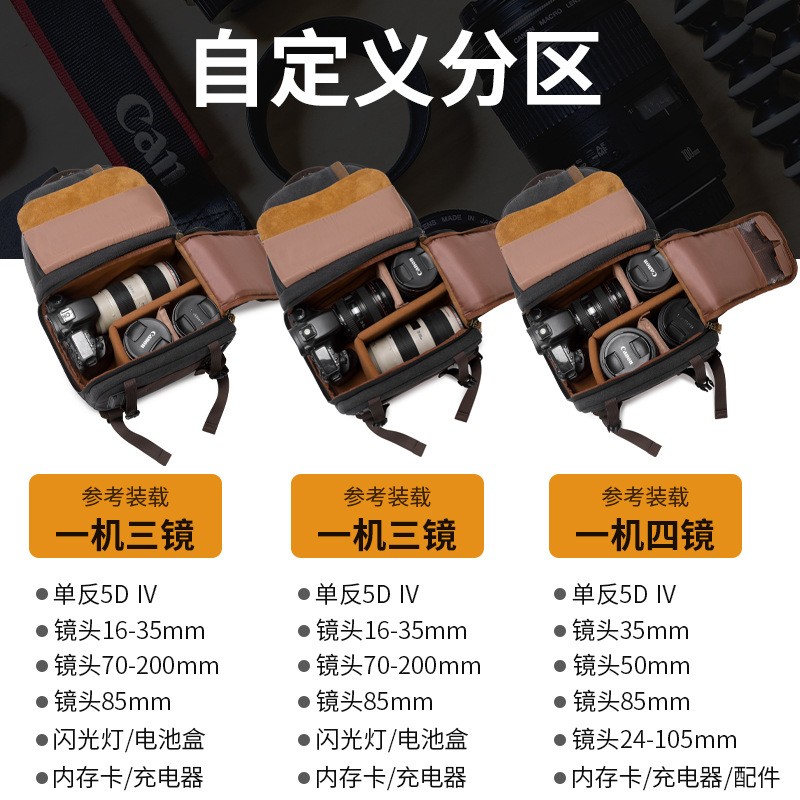 专业摄影单反相机包女上下分仓多功能轻便适用于佳能尼康双肩背包