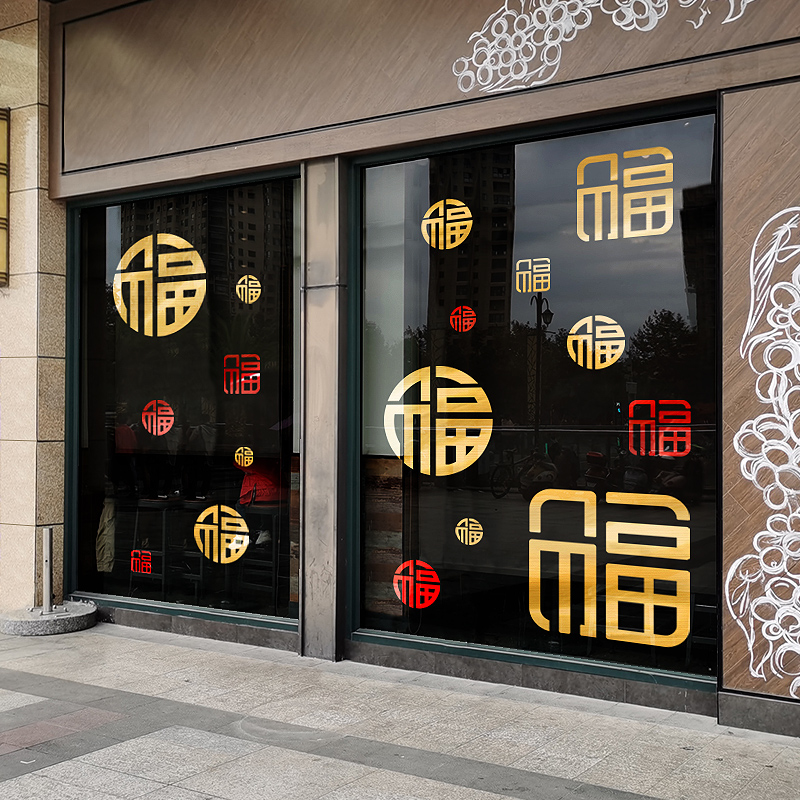新年装饰窗花过年店铺橱窗玻璃贴门贴纸商场虎年贴画春节福字窗贴