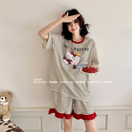 缤安娜家居服睡衣女款夏季2025新款短袖流行薄款纯棉短裤夏款套装