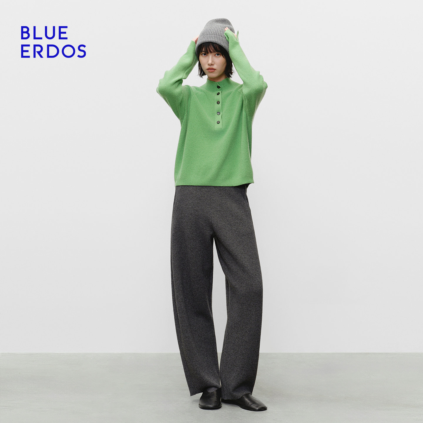 BLUE ERDOS 秋冬新品舒适质感羊毛羊绒松紧腰直筒长裤阔腿裤