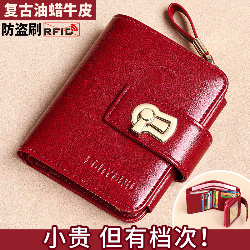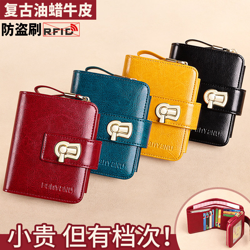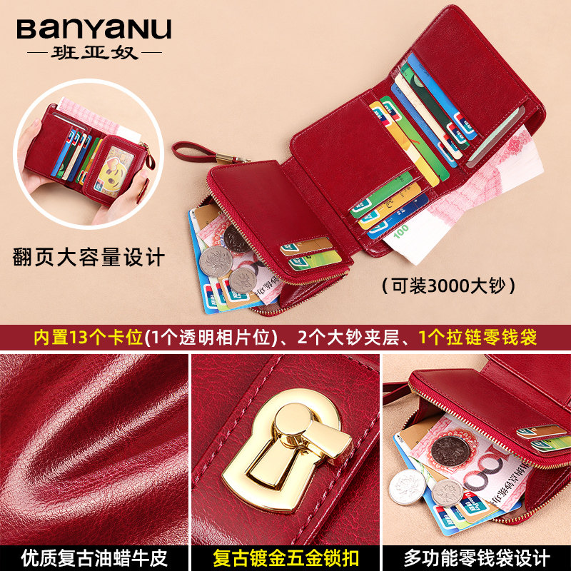 钱包女真皮短款2025新款大容量时尚精致折叠简约拉链钱夹卡包一体