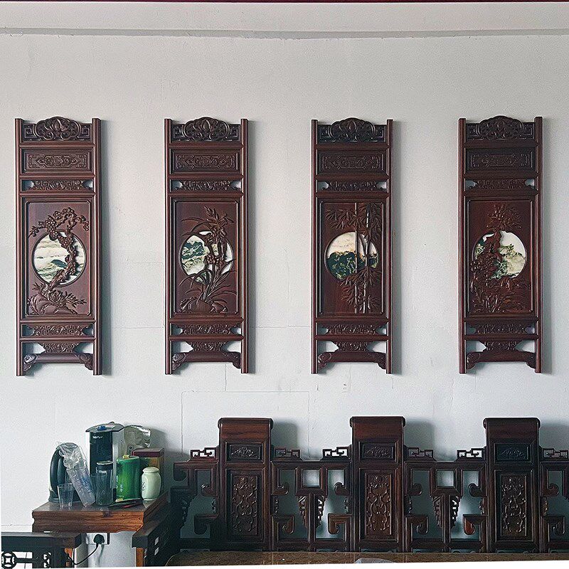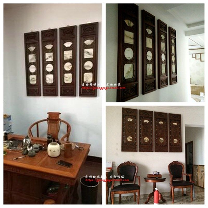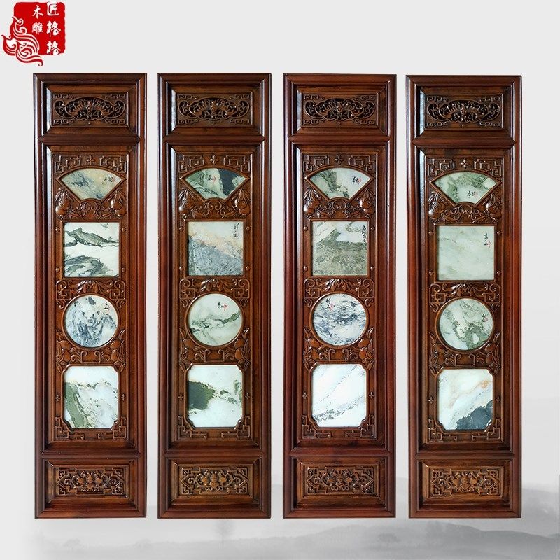 东阳木雕挂件客厅沙发背景大理石画挂屏实木香樟木雕刻四条屏