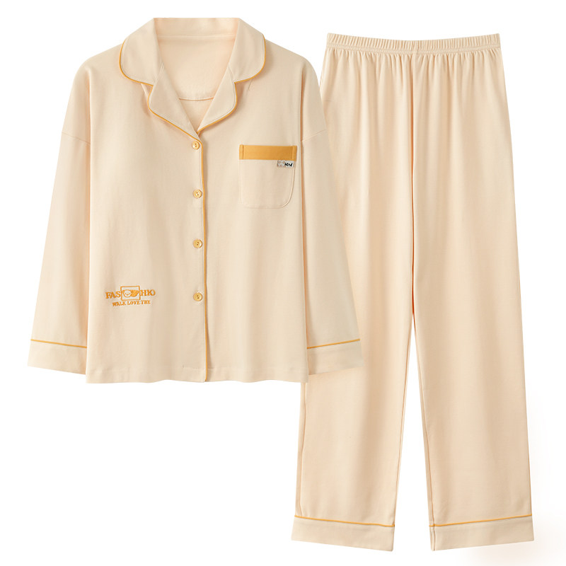 浪莎睡衣女春秋季纯棉带胸垫长袖长裤防凸点可外穿秋冬家居服套装
