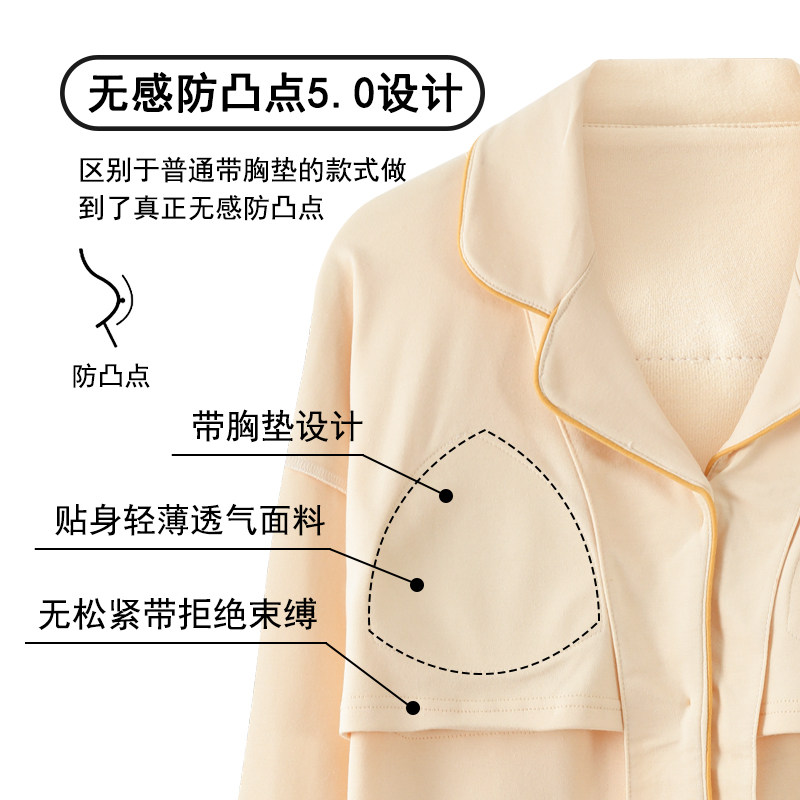 浪莎带胸垫防凸点睡衣女长袖套装