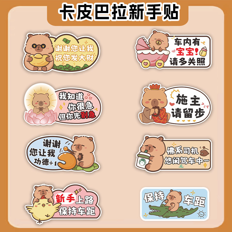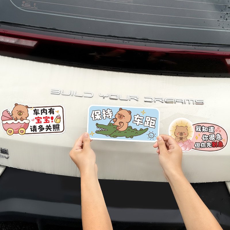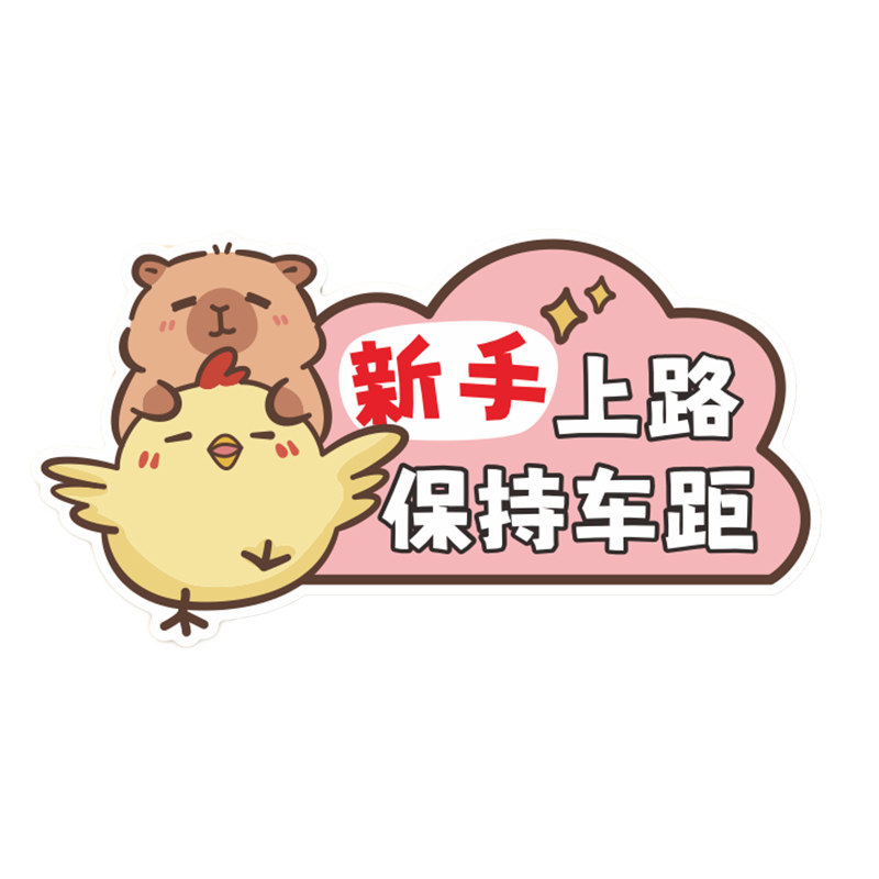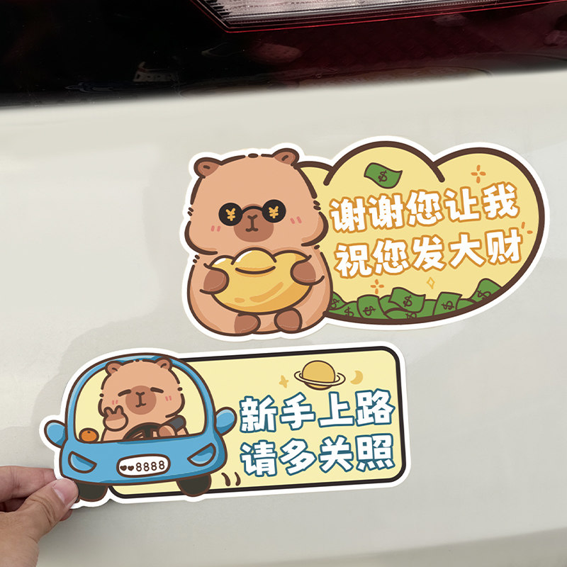 新款水豚车载实习贴磁吸标志新手上路汽车贴纸女司机提示贴可爱