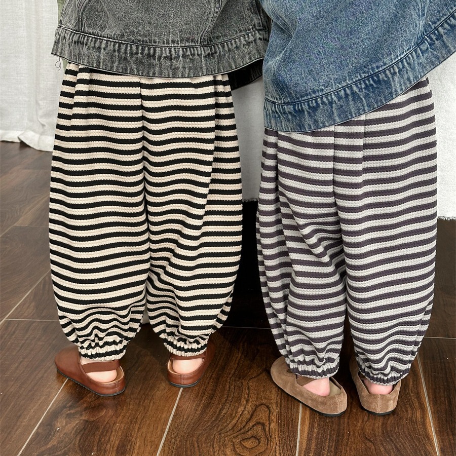 佳叶童品2025儿童春秋新款条纹灯笼裤男女宝宝洋气休闲裤卫裤