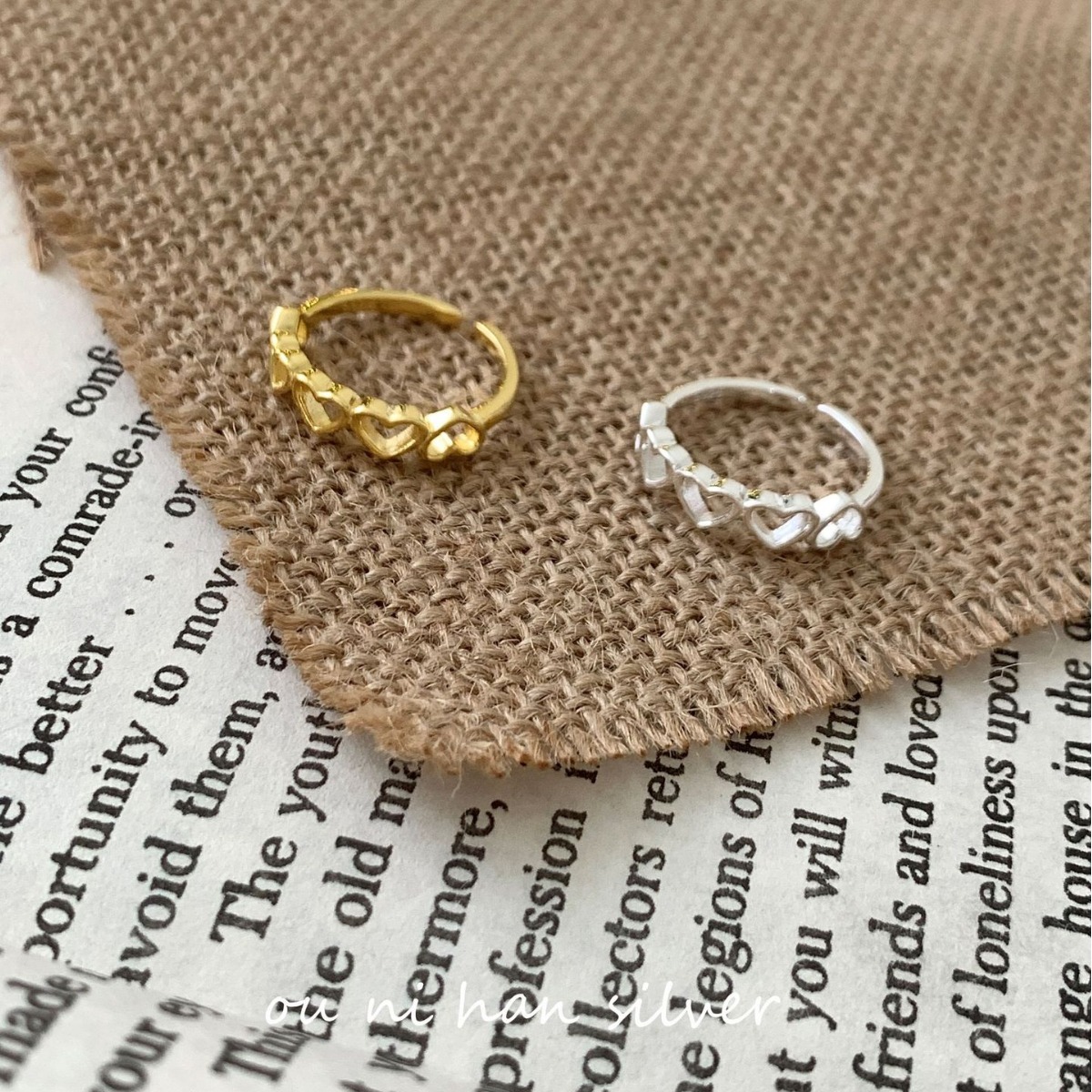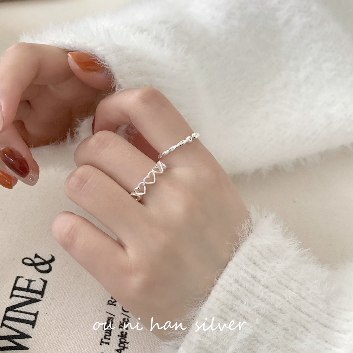 lulu 925纯银爱心叠待戒指女ins韩国时尚小众设计桃心开口食指戒