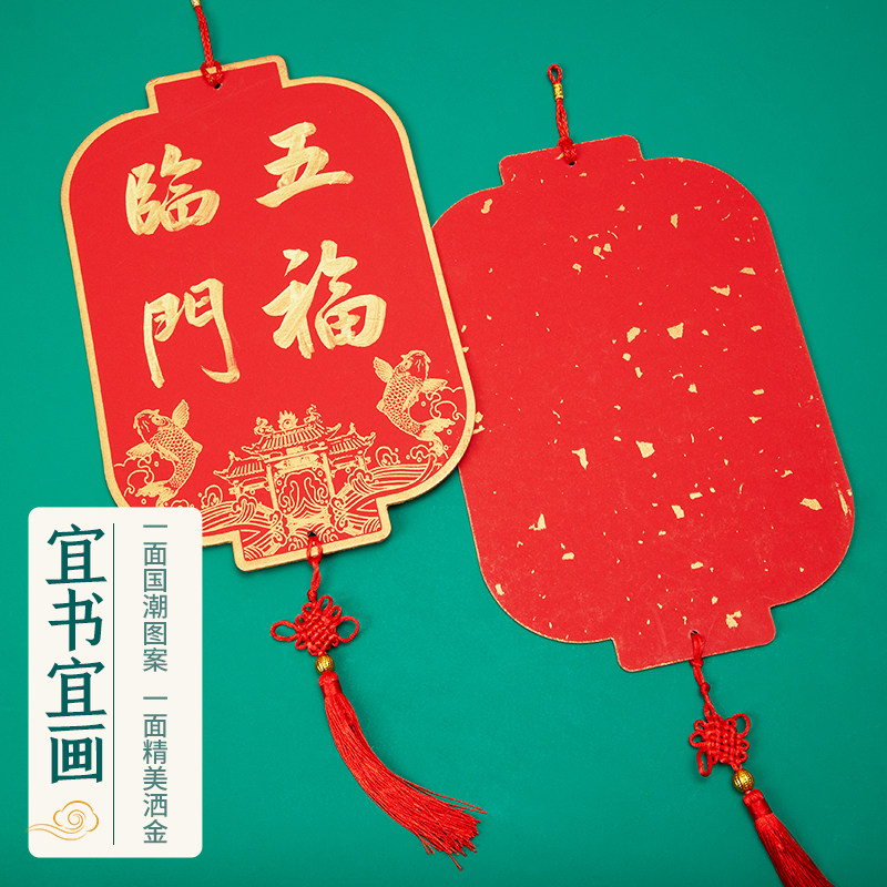 六品堂2026福卡福字硬卡纸万年红宣纸挂件新春空白手写斗方书法纸红纸挂饰毛笔字书法春节双面圆形灯笼宫灯