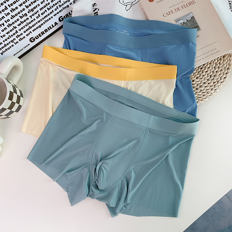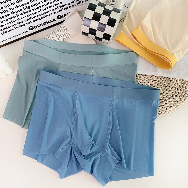 冰丝男士内裤纯色简约无痕透气轻薄运动凉感平角四角无菌裸感轻薄